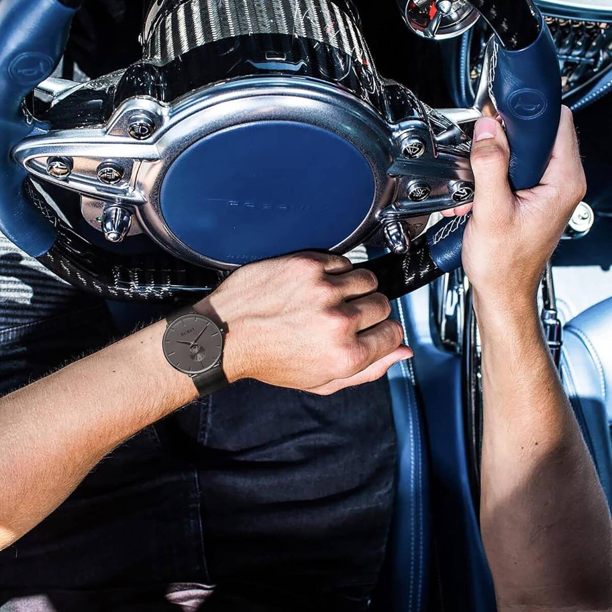 腕時計 メンズ 黒 シンプル オシャレ 日本製クオーツ ブランド 防水 紳士 ウォッチ (黒-黒-ブラック針, ステンレス鋼) かっこいい センス