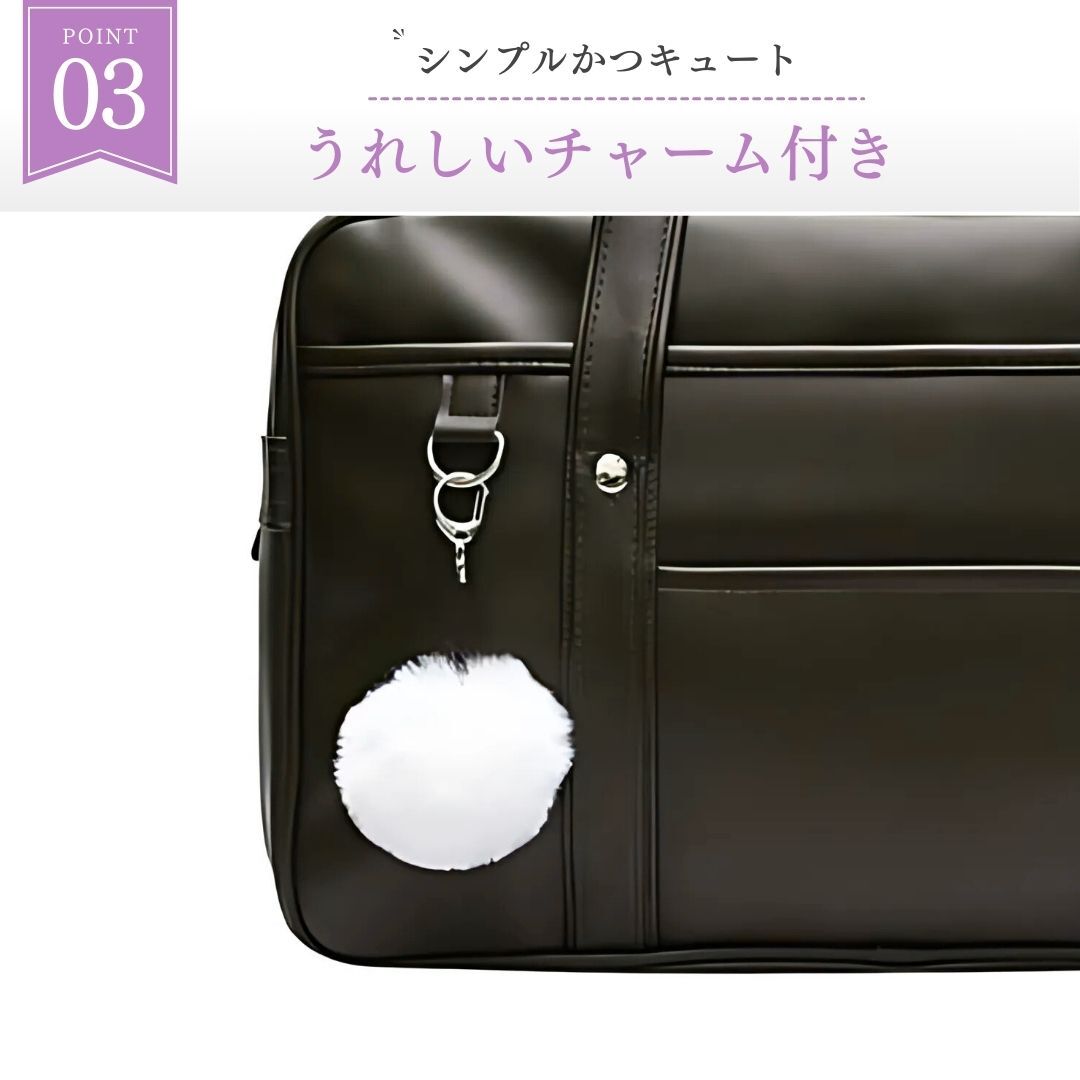 使いやすさ抜群のスクールバッグ。ブラック うれしいチャーム付きのご案内です。