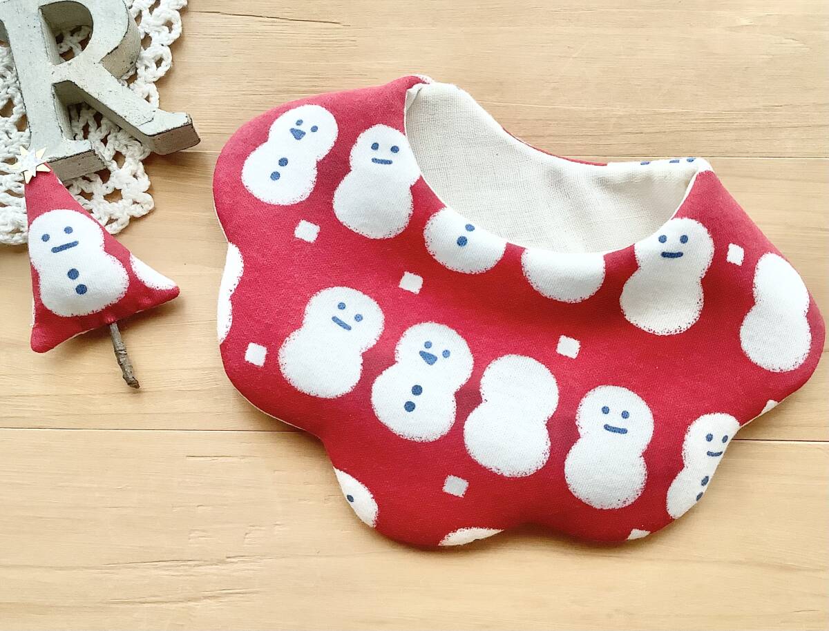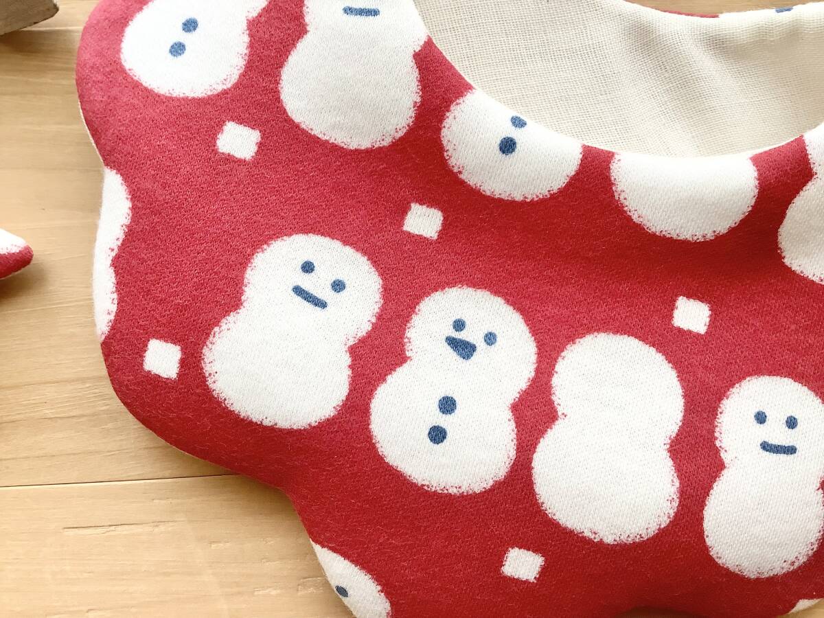 再販♪雪だるま♪ふんわりニットスタイ♪オーガニック♪ハンドメイド