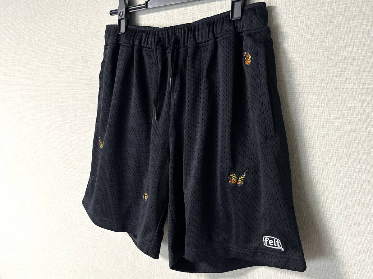 felt フェルト メッシュ ハーフパンツ 黒 Lサイズ FELT Home Team Mesh Shorts バタフライ 蝶 ヘビーウェイト 肉厚 ショートパンツ