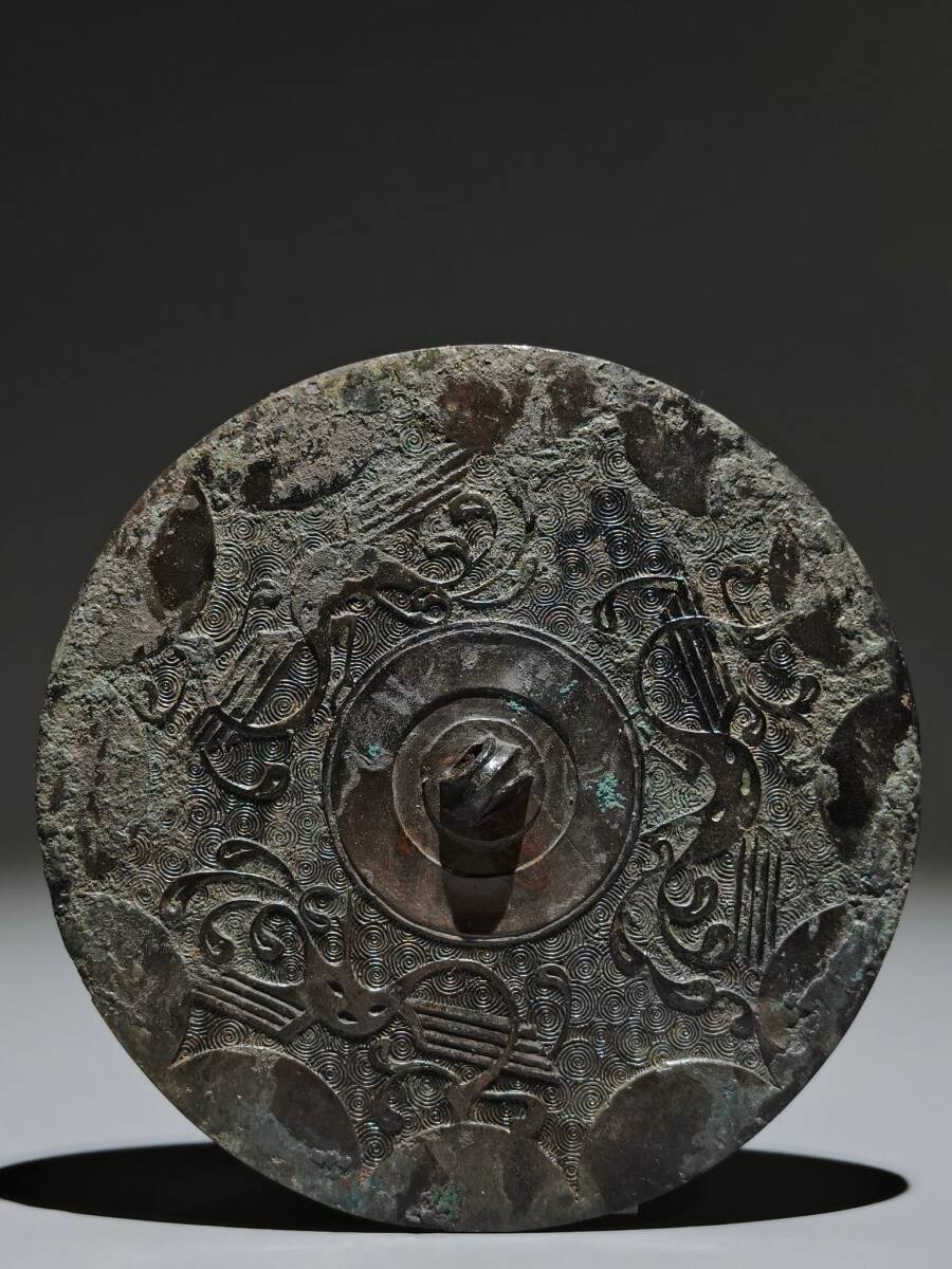 【超珍館蔵】戦 青銅製 三鳳紋鏡 銅鏡 青銅器 置物 賞物 古賞物 古董品 古美術品 時代物 旧家蔵出 稀少珍蔵品