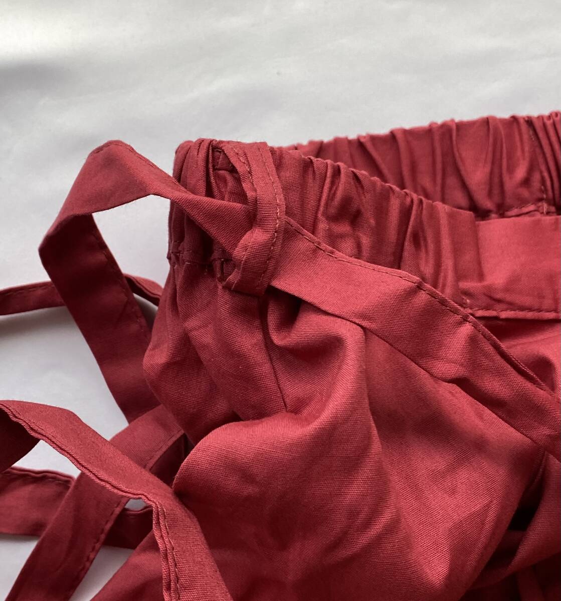 ウエストの左右にベルト通しがあり、共布のヒモがついています。(写真3枚目)