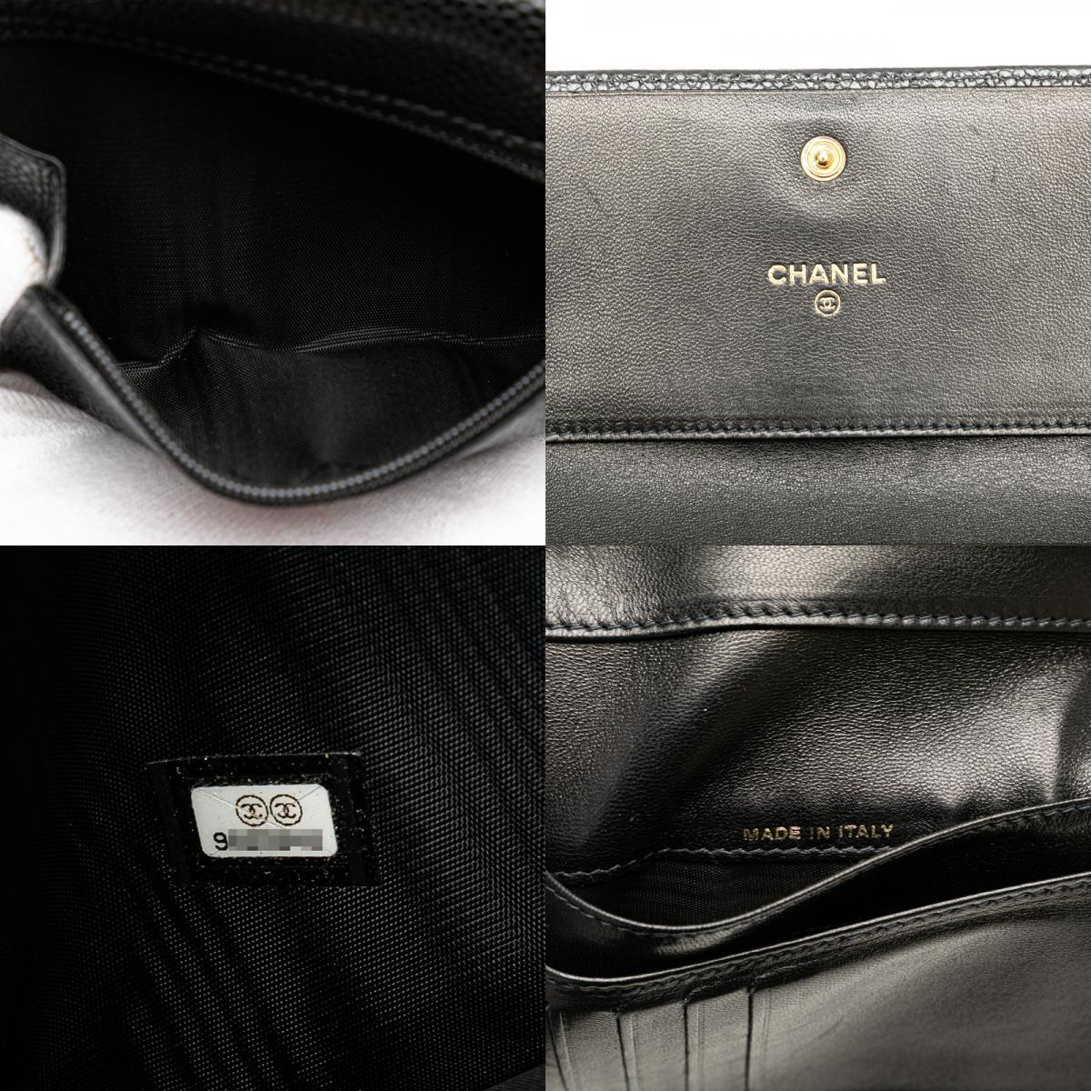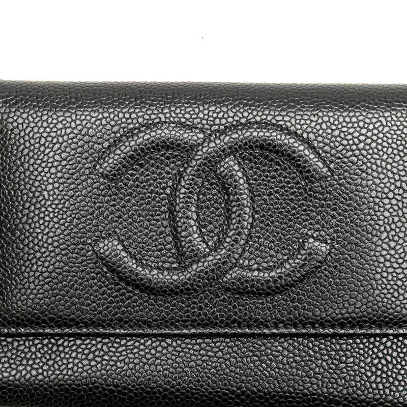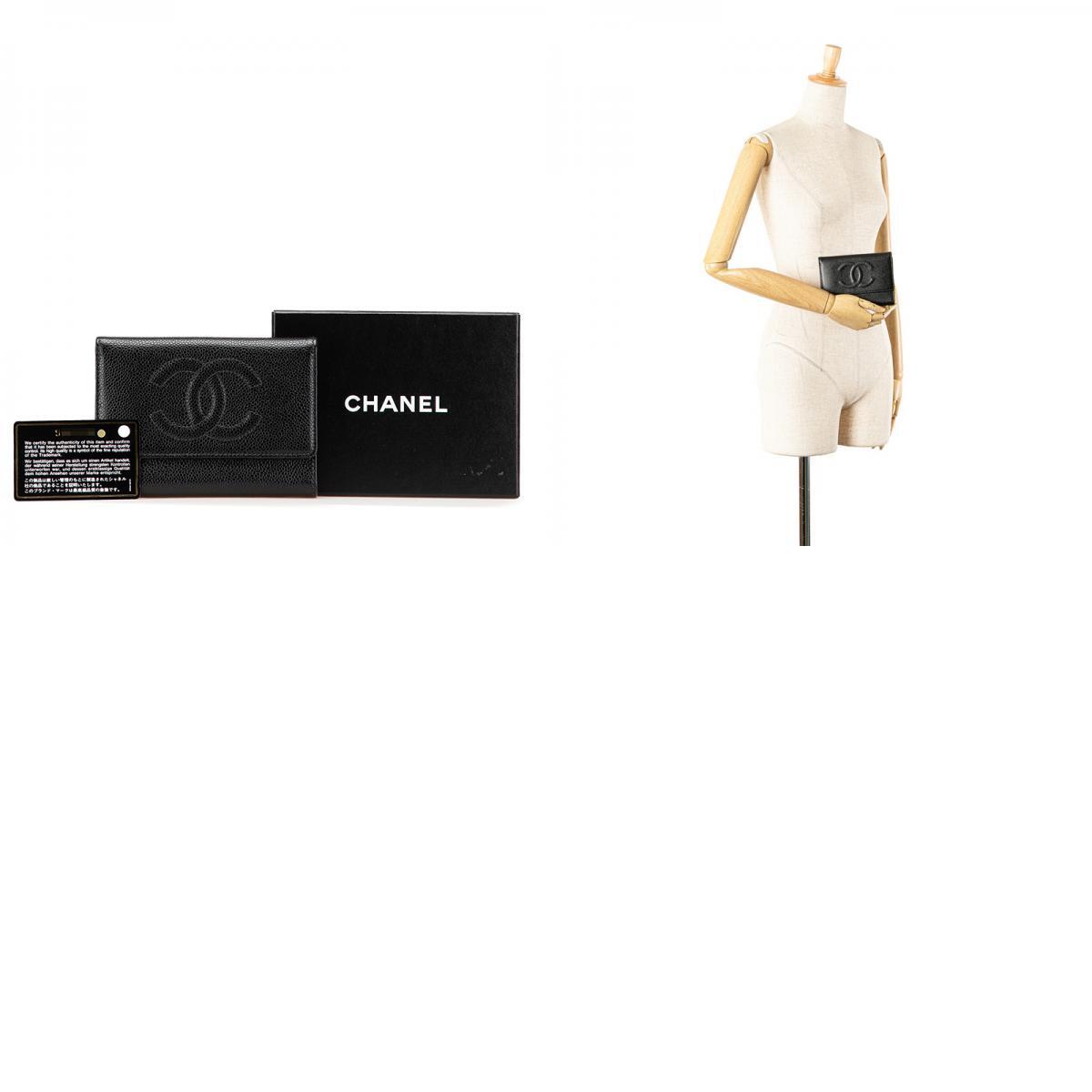 シャネル ココマーク 三つ折り財布 ブラック キャビアスキン レディース CHANEL 【中古】