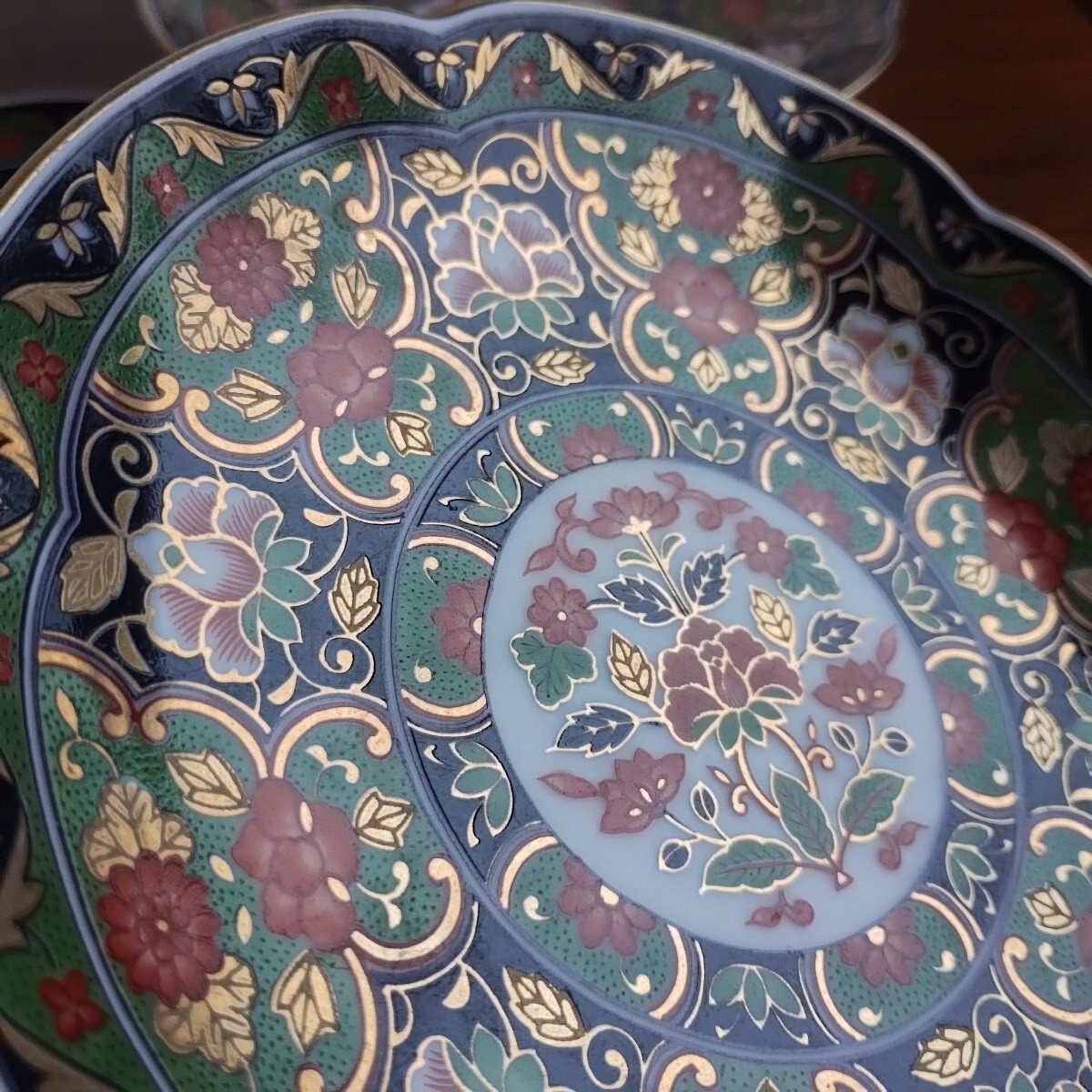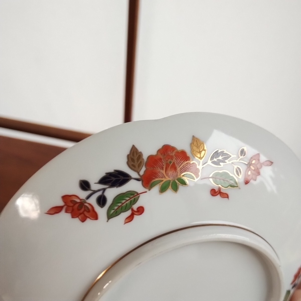 金縁、花柄が豪華な印象です。裏側にも花柄があしらわれています。