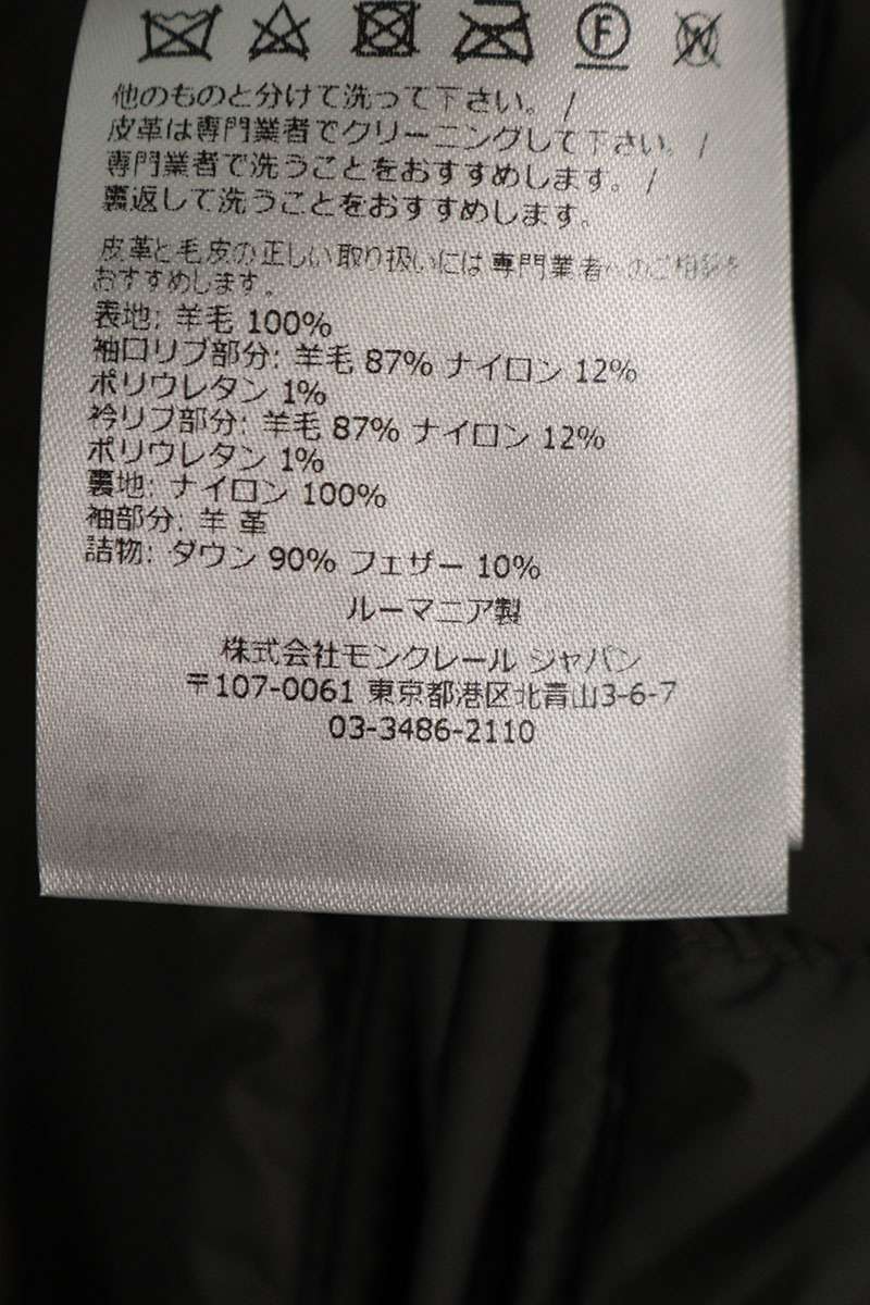 素材 | (表地) ウール (裏地) ナイロン (中綿) ダウン90% フェザー10% (リブ) ウール87% ナイロン12% ポリウレタン1% (皮革部分) 羊革 |