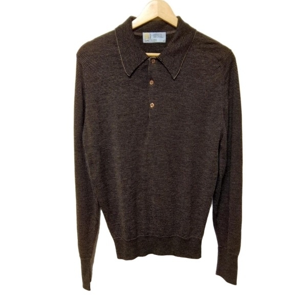 ジョンスメドレー JOHN SMEDLEY 長袖セーター/ニット サイズSML - ダークブラウン×ブラウン メンズ レギュラーカラー/ボーダー 美品