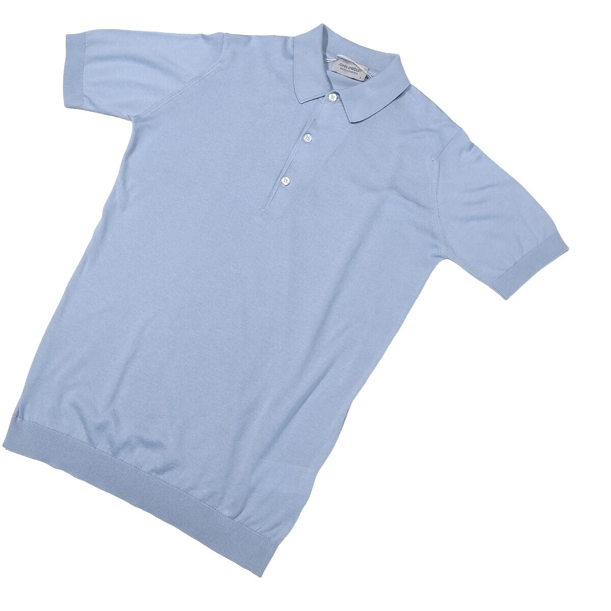 メンズ S ジョンスメドレー 最高級コットン 台襟ポロシャツ ADRIAN MIRAGE BLUE JOHN SMEDLEY イギリス製★