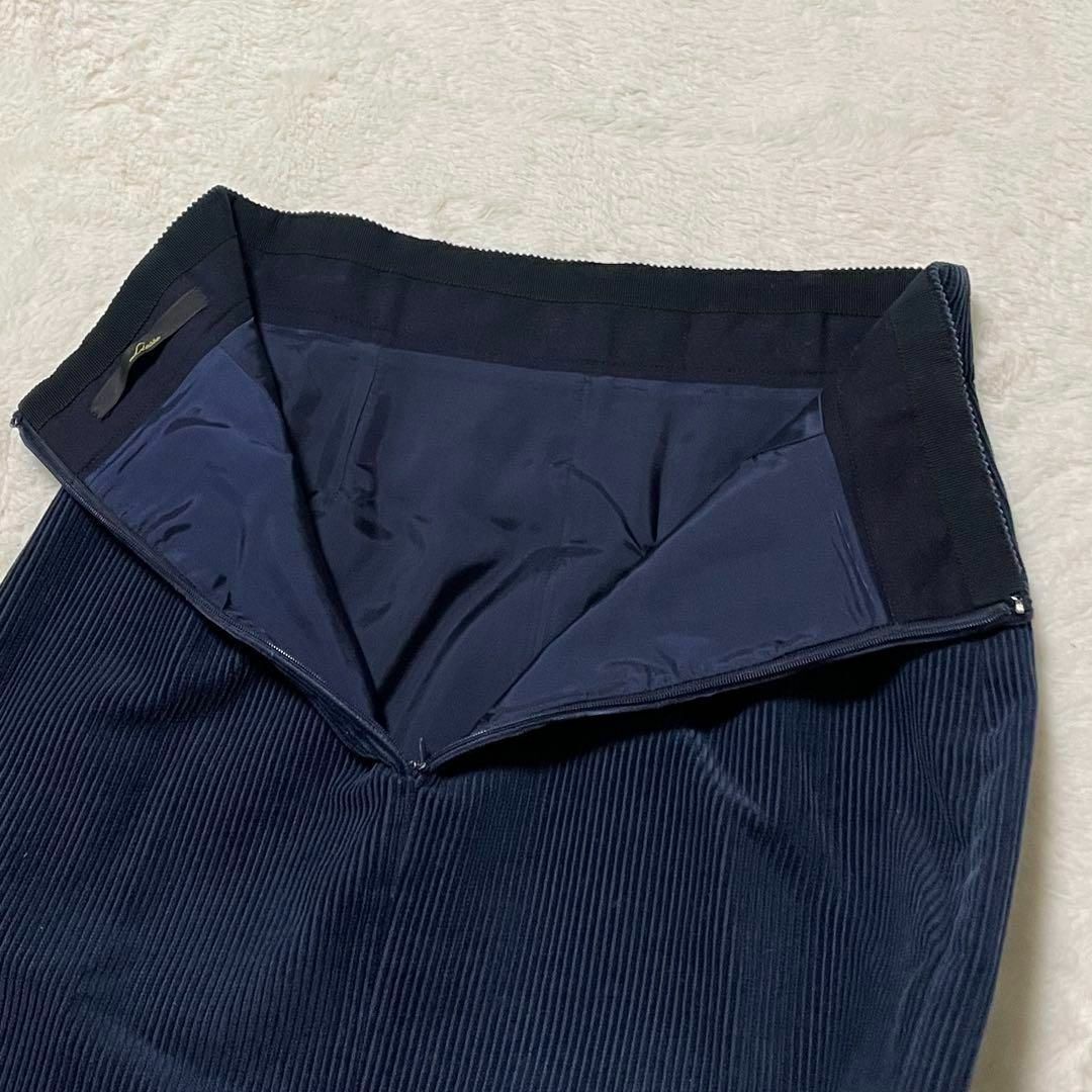 広がりの抑えられたタイトシルエットですが裾の方のみ少しフレア感があって広がりを感じる上品なスカートです