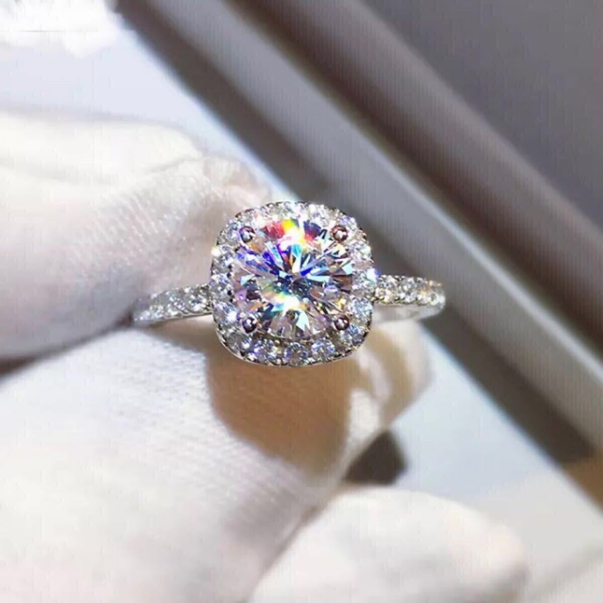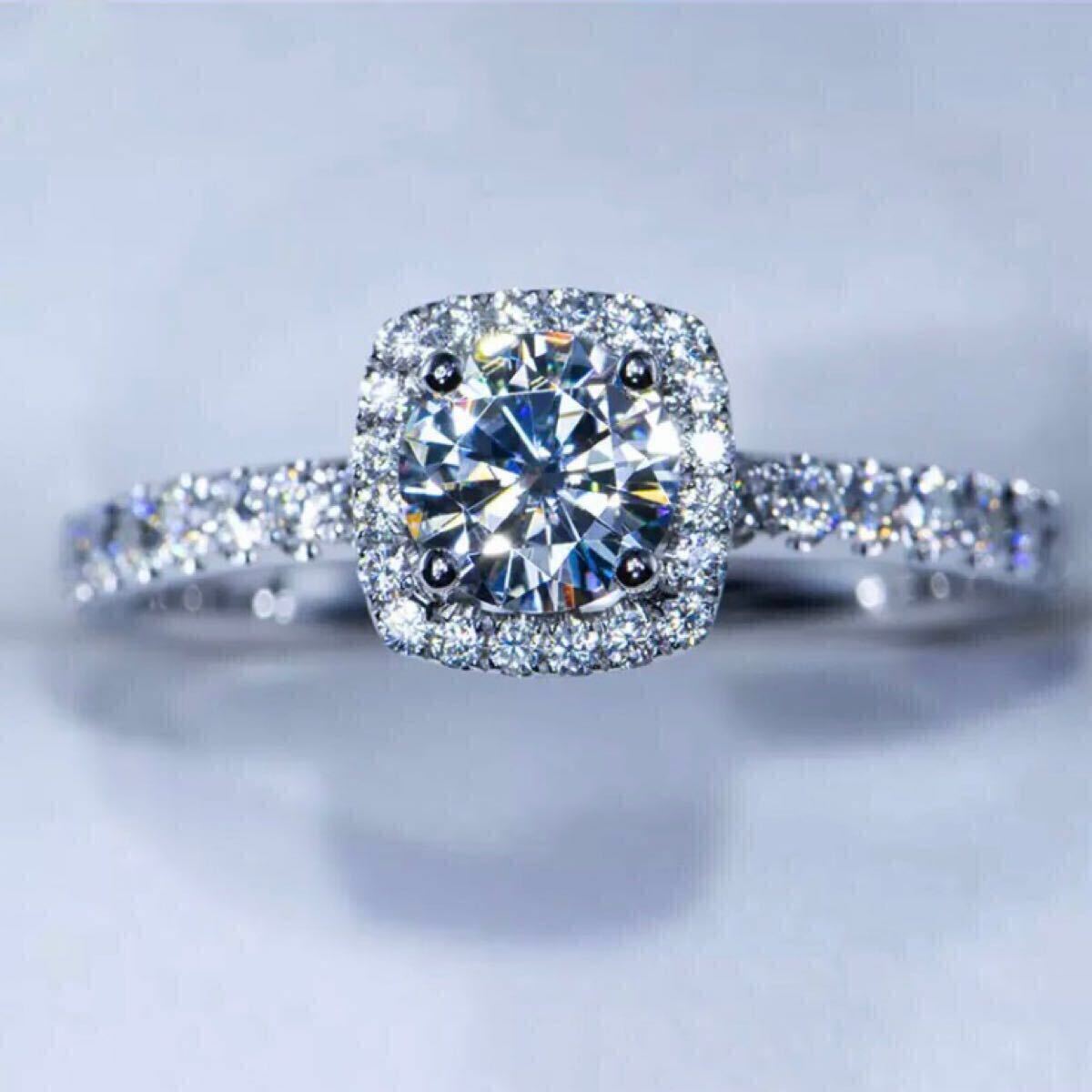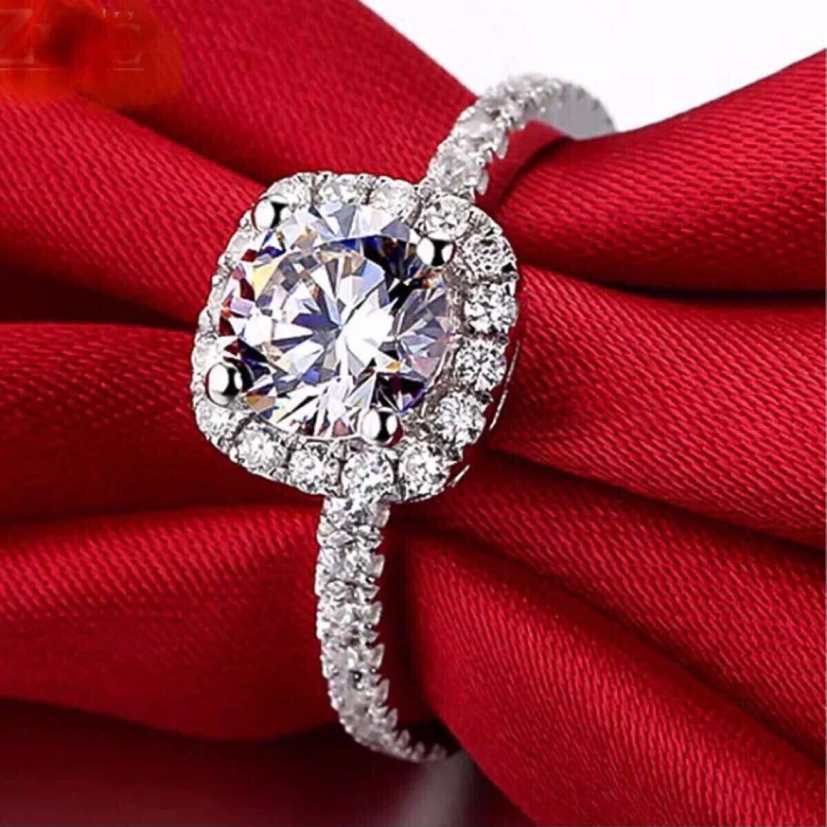 大粒にカットされた、ラウンドAAA+CZダイヤモンドと、周りを飾るCZダイヤの華やかな輝きが視線を集めるお品です。スッキリとしたスクエアデザインで、どんなファッションにも合わせやすいお品です。