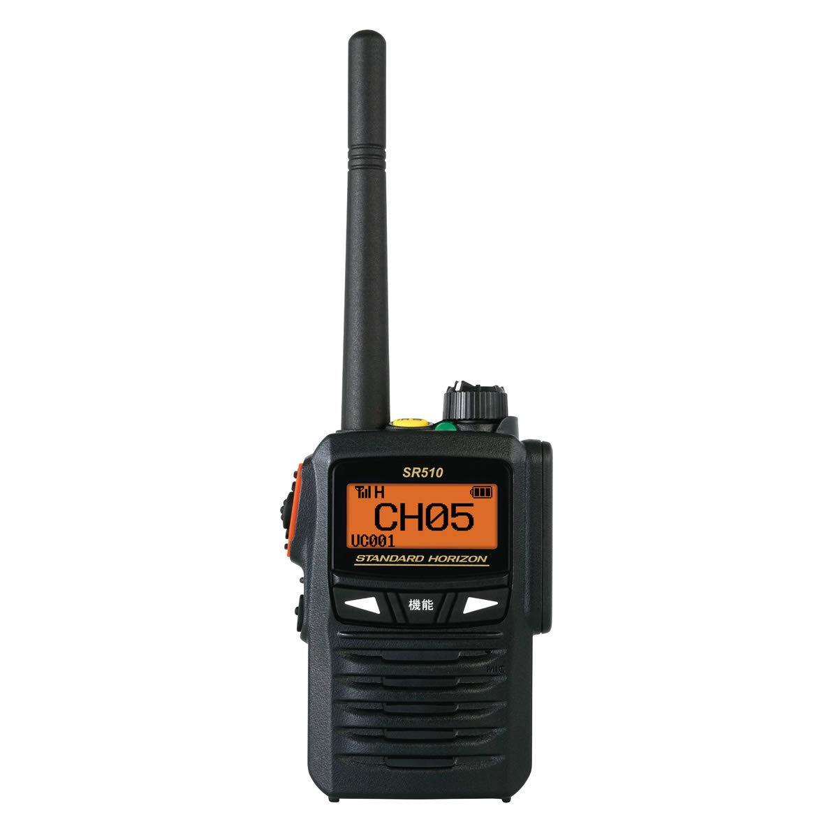 型 番 | SR510 | 使用周波数 | 登録局デジタルチャンネル (6.25kHz 間隔、82波) 351.03125MHz ? 351.10000MHz、351.20000MHz ? 351.63125MHz 上空用チャンネル(6.25kHz 間隔、15波)351.10625MHz ? 351.19375MHz(モニターのみ可) |
