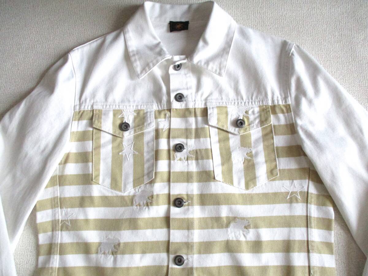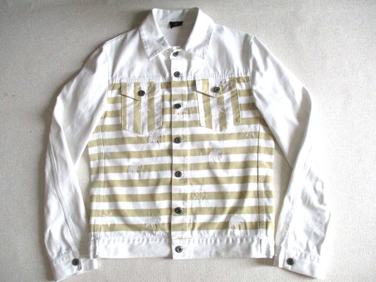 イタリア製★ 50 ハンティングワールド★ ボーダージージャン型ジャケット★ ホワイト×ベージュ
