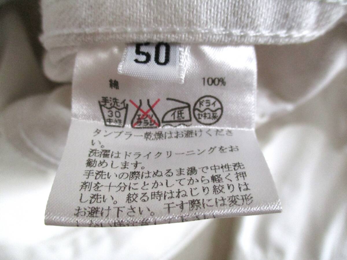 表記サイズは50、100%コットン、イタリア製、色はホワイト×ベージュです。
