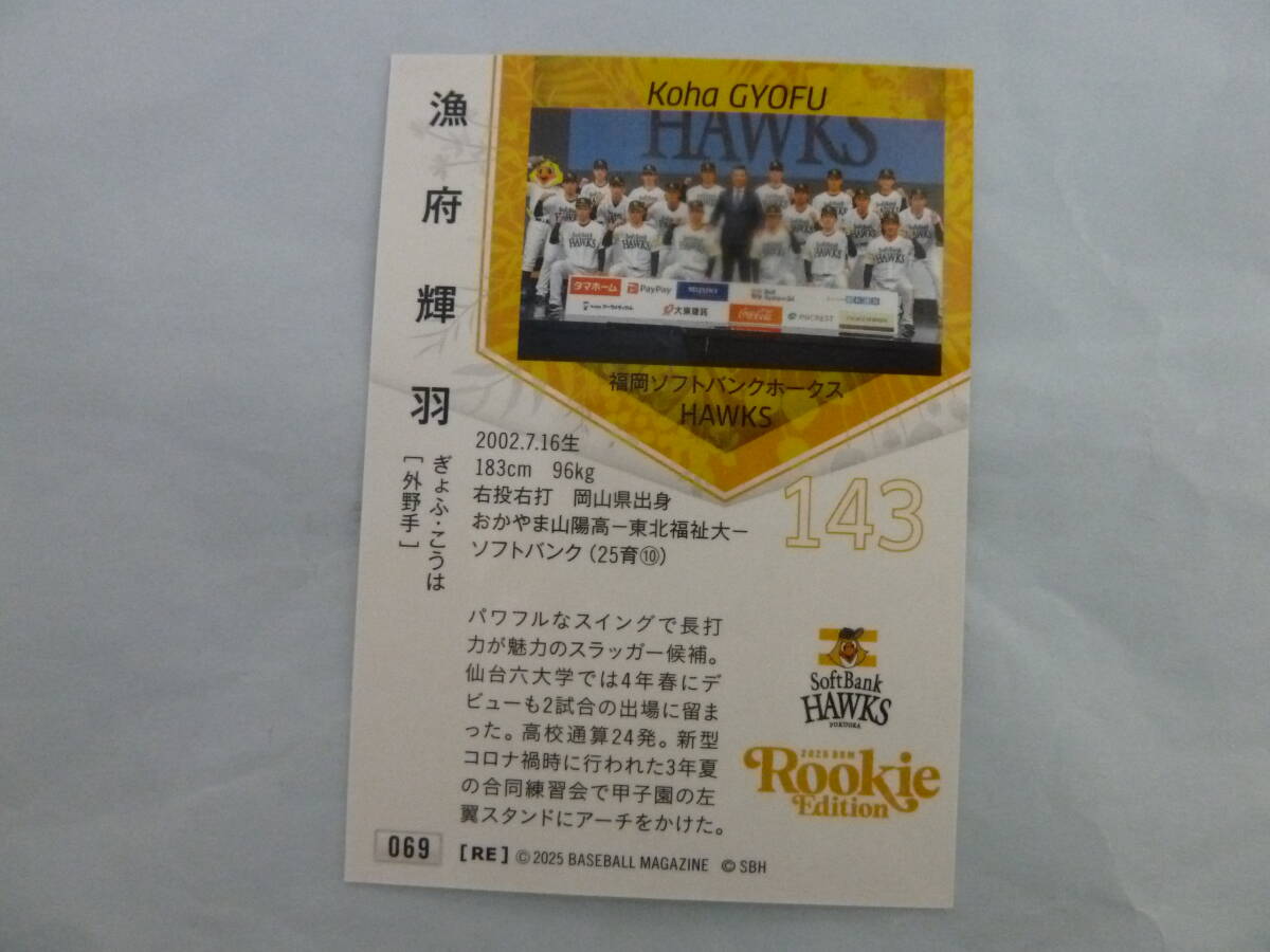 BBMルーキーエディション 2025 漁府輝羽♯143 直筆サインカード 福岡ソフトバンクホークス 激レア