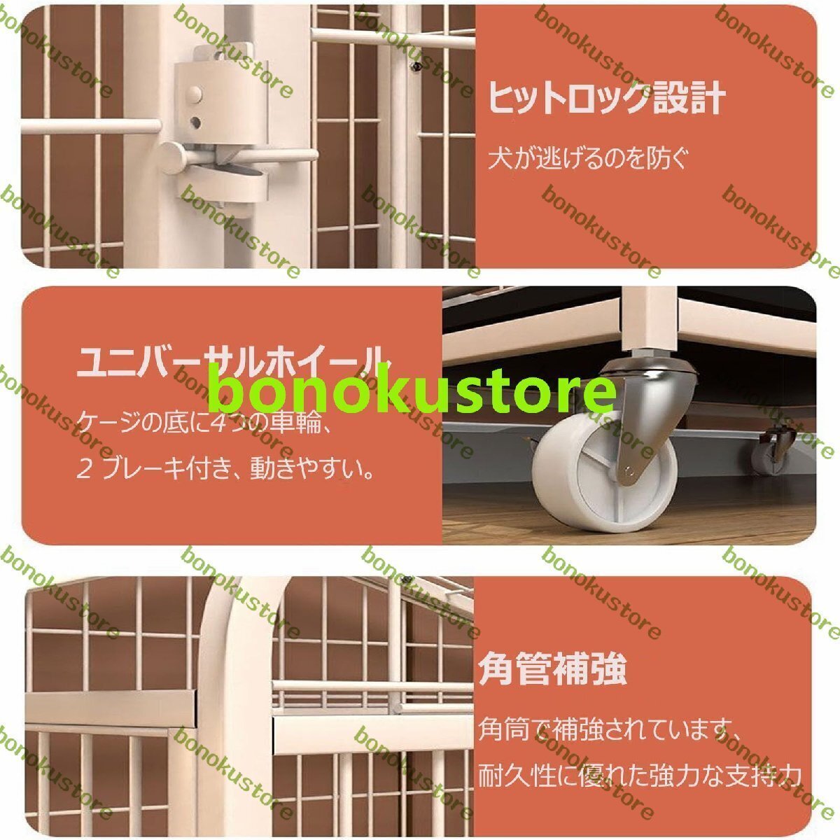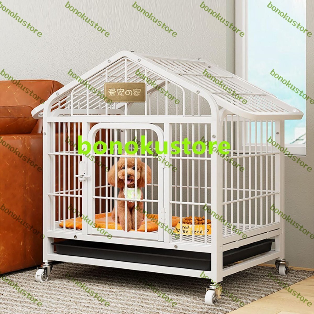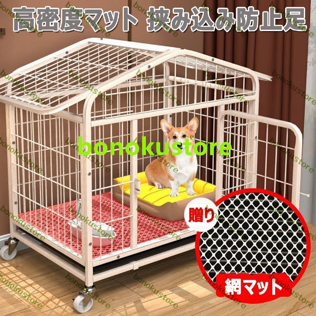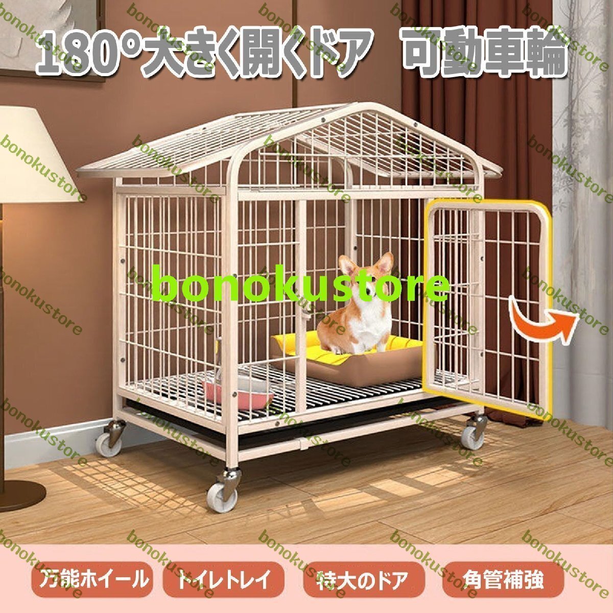 犬のケージ ステンレス鋼 ドッグケージ 小型犬 中型犬 大型犬 犬用ケージ 屋根付き トレイ付 キャスター付き 室内 屋外 ペットケージ 犬小屋 頑丈 噛みに耐える 脱出防止 お手入れ簡単 組立簡単 キャット用品 ドッグ用品 70*52*78cm 白い