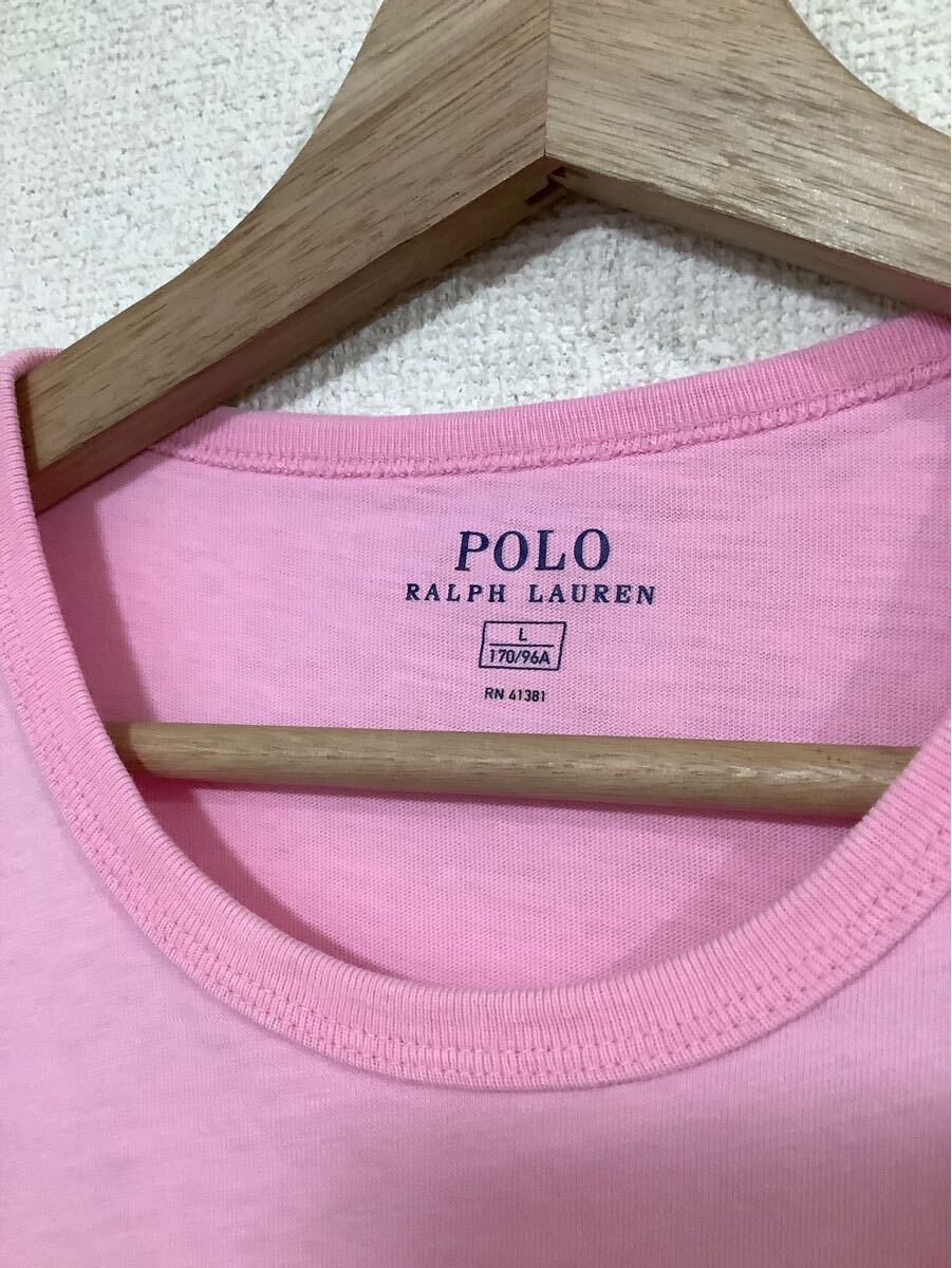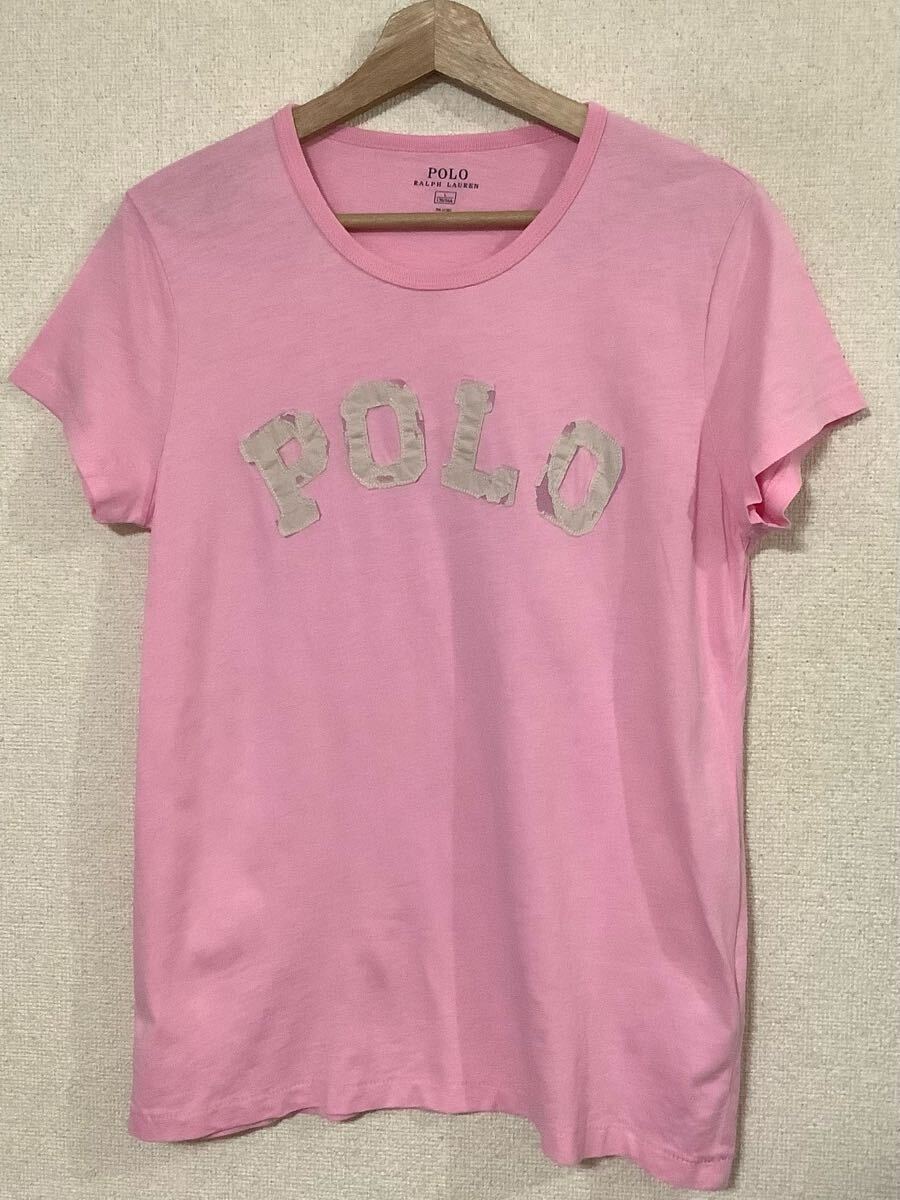 POLO RALPH LAUREN ラルフローレン ワッペン付き 半袖Tシャツ ピンク セレクト メンズ 古着 L