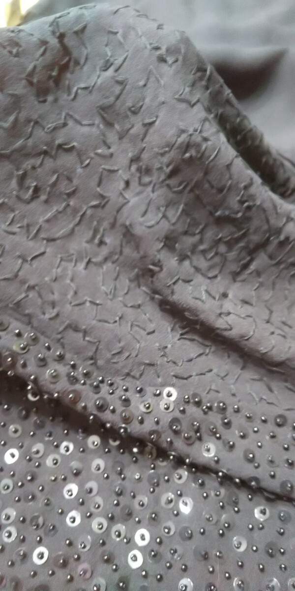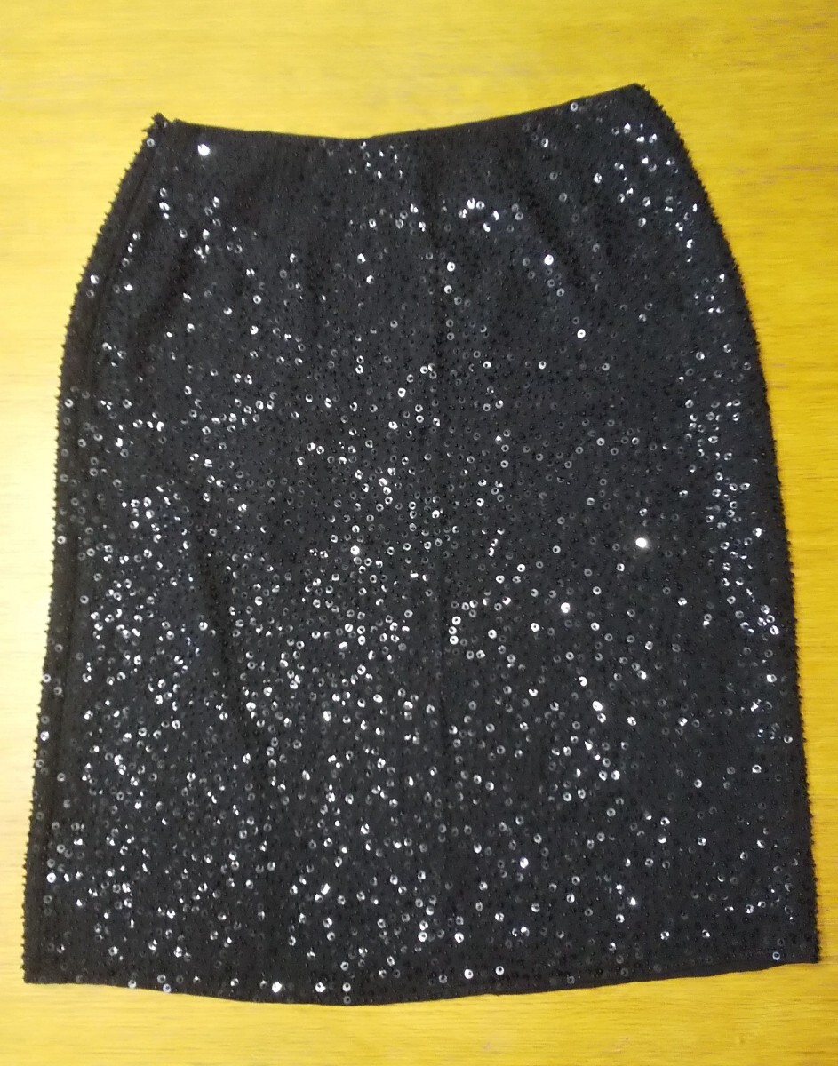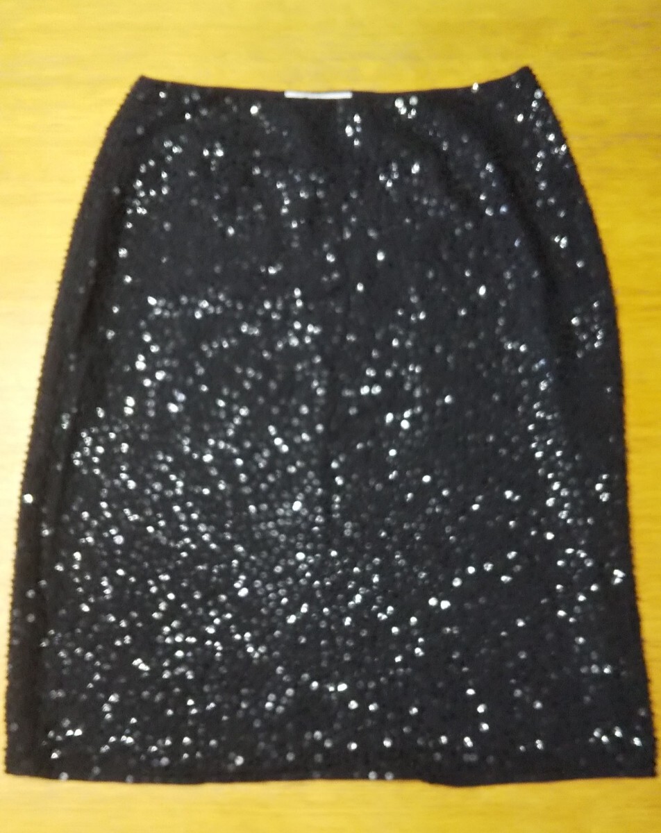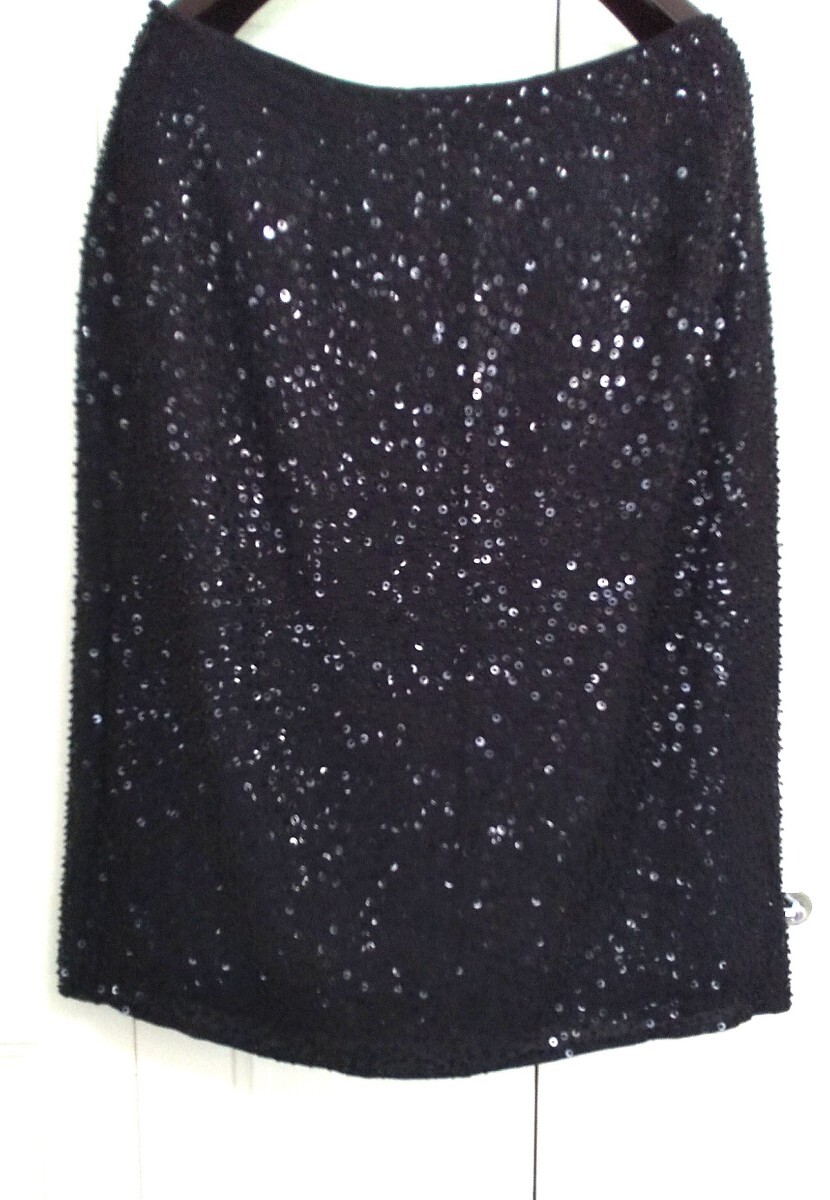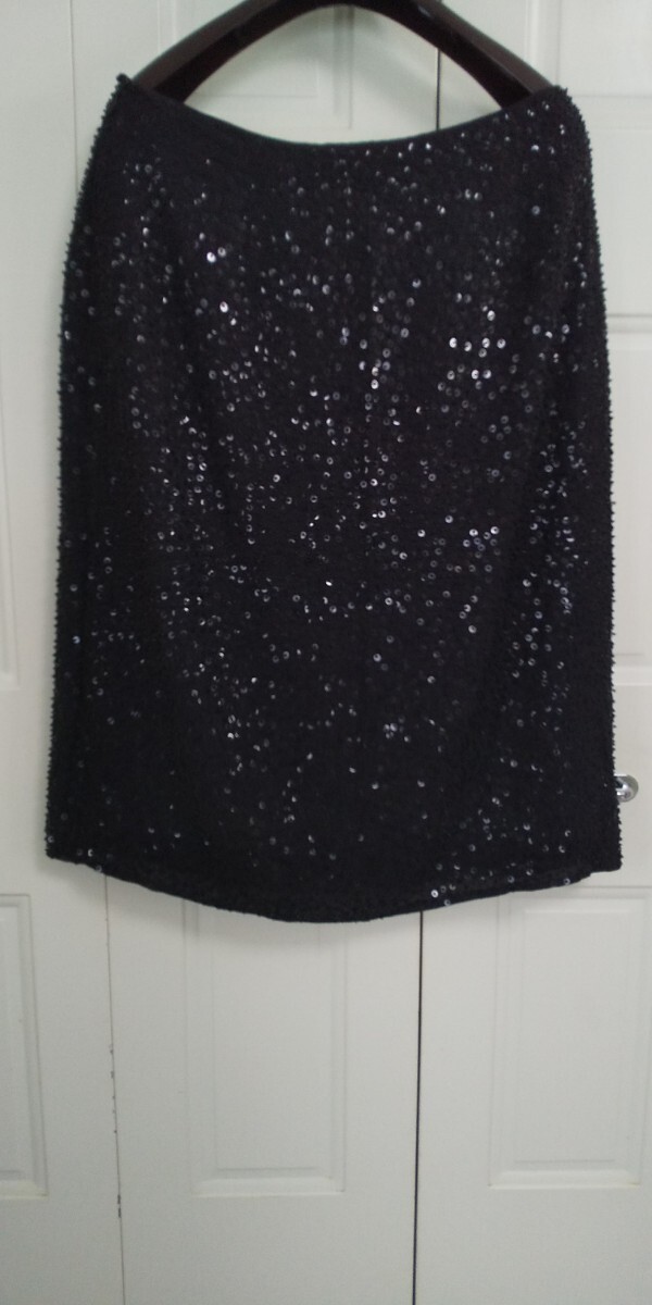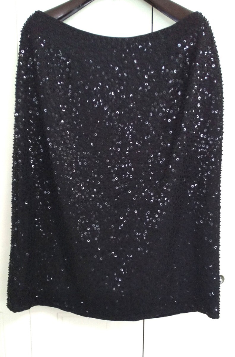 手縫いスパンコール装飾の黒いタイトスカート、サイズ6。