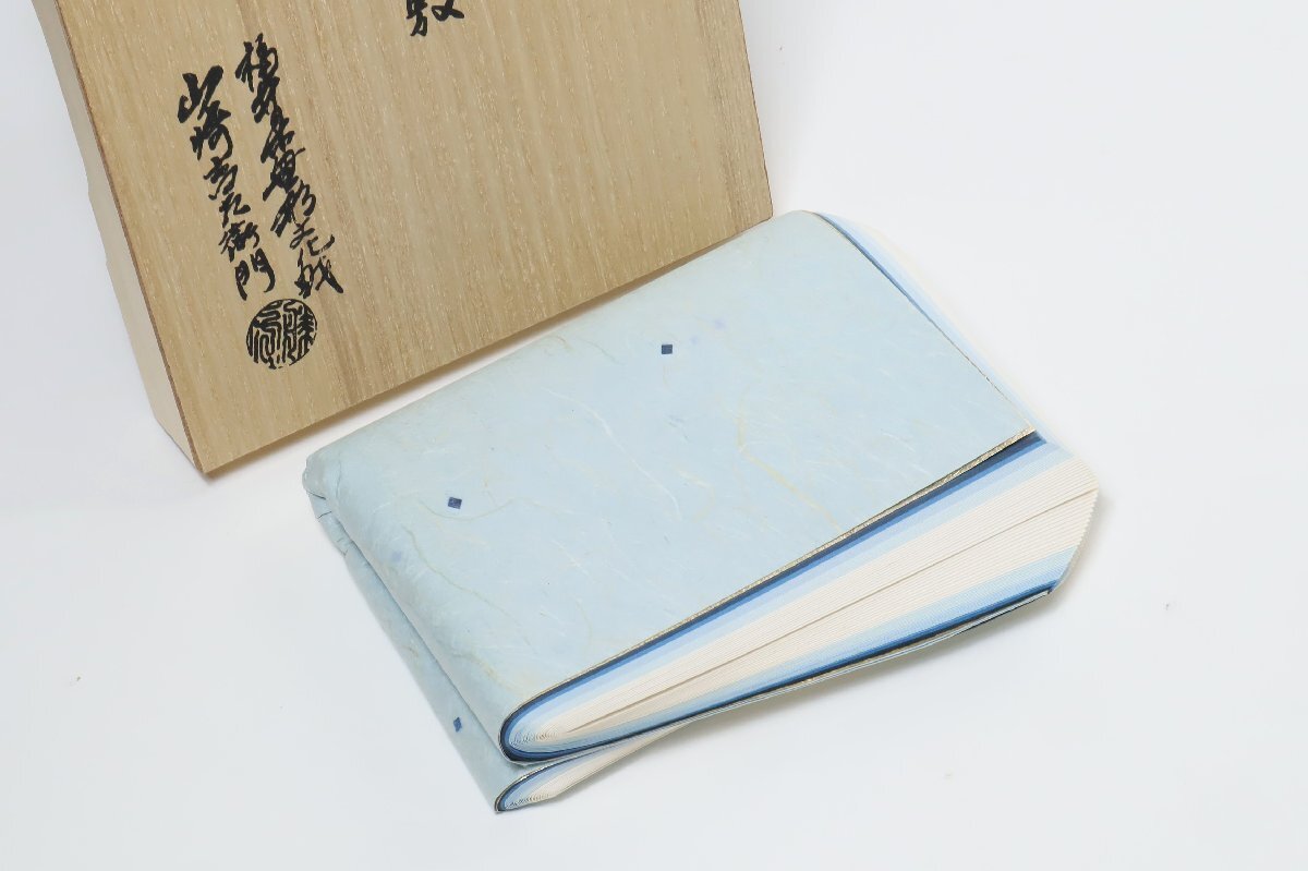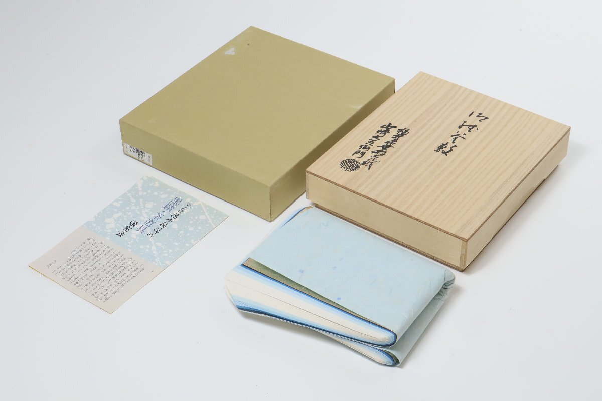 | ・福井県無形文化財 山崎吉左衛門 御紙釜敷 共箱 水色 茶道具 |