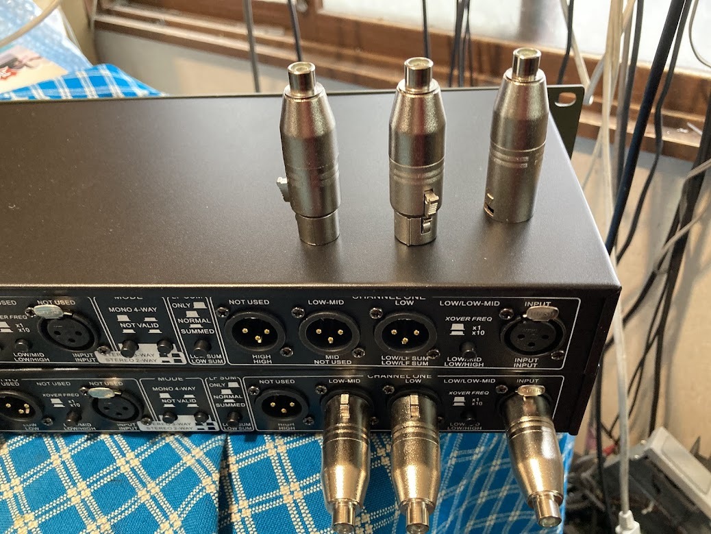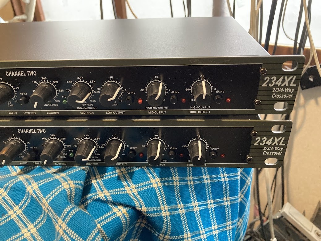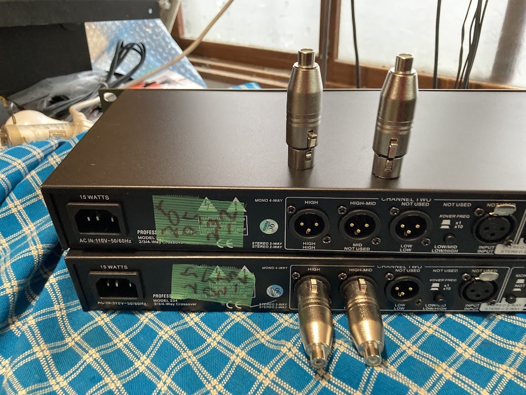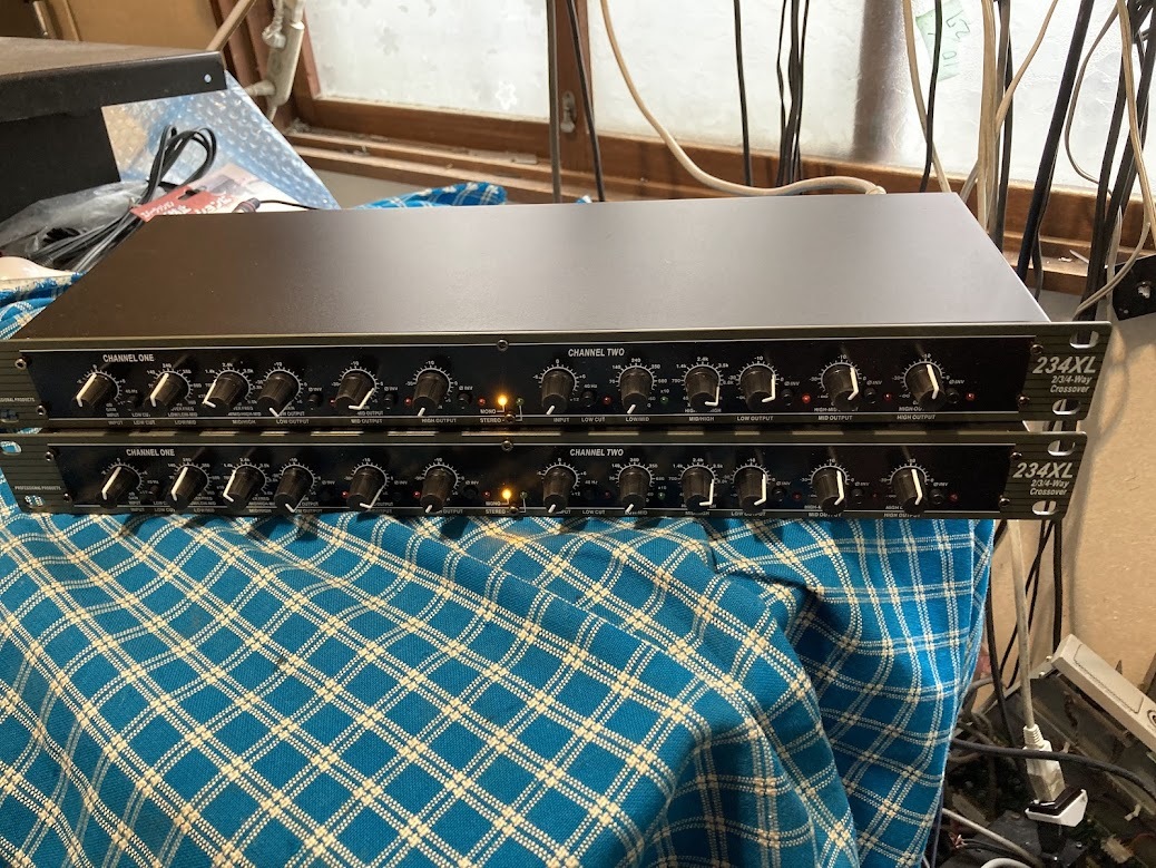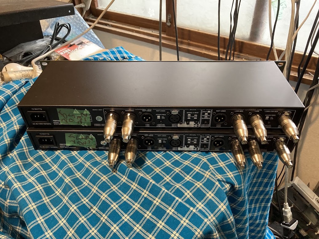 dbx 234XL チャンデバ モノ4ウェイ設定2台使用で ステレオ4Way ステレオ4ウェイの チャンデバは、機種が少ないので今回は2台で対応します 写真のツマミの設定は クロス250Hz 1400Hz 上6800Hz 下6500Hzです ので例として低音に 38〜46センチ 中低音30〜38センチ 中高音ドライバー 高音ツイーターの構成 システムは2ウェイと4ウェイは比較的扱いやすいですが3ウェイは難しいです ほとんど未使用と、思われ、傷汚れの少ない美品です 取説は日本語PDF です 当方の出品機器でデバイダーが多いのはネットでそれほど高価でない パワーアンプを数代求めてSPのユニットも自由に選べるマルチ方式が 音を良くしたい 方えの、最短の方式でだからです 電源、SP、ライン用のケーブルは高価な物も安価のものも、音の善し悪しには全く関係ないです1m70円と100、000円のものとは音が変わりますが100、000円が良くなるとは限りません 悪くなる方が多いです マルチは非常に簡単ですネットワークの コイルやコンデンサーはその専門の人たち意外素人が挑戦して成功することは0,001%くらいです、気に行ったユニットでシステムに挑戦する方はビギナーなら決してネットワークの泥沼には走らないで300円のRCAケーブルとビニールコードのSP線で即座にいい音が得られるマルチ方式以外は無駄です メーカーのオリジナルのSPのネットワークは専門の方が、トータルの音づくりのビルトインですので流用して他のシステムなどに組み合わせるなども泥沼です チャンネルデバイダー方式は、どの様なユニットでもどの様なクロスオーバーでも どの様なパワーアンプでも簡単に組み合わせができます それほど高価でない同じアンプで駆動するのが初心者には最適です 条件は入力のレベルコントロールがないアンプは不可です(この訳はかなり重要でこのこと、を無視してマルチシステムを失敗 してマルチはダメという人がいます)どうしてもそのようなアンプを使う時は外付の VOLボックスを用意してください 多分深い訳があるのでしょうが意外と低音用に300W 中音用に100W 高音用に50W と考えてプランして実際は高音用に300w 低音用に 50Wでないといい音にならないことがあったりします 点検・整備・調整済み。 傷、汚れあります 即決落札の方にはRCAーXLR変換オス2個メス8個お付けします | |