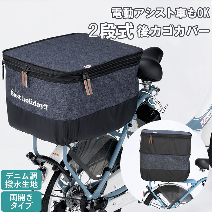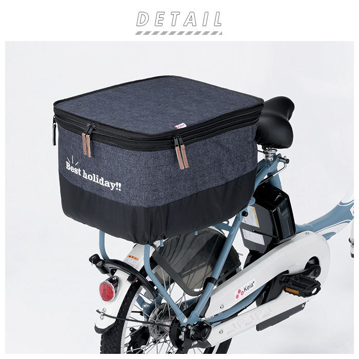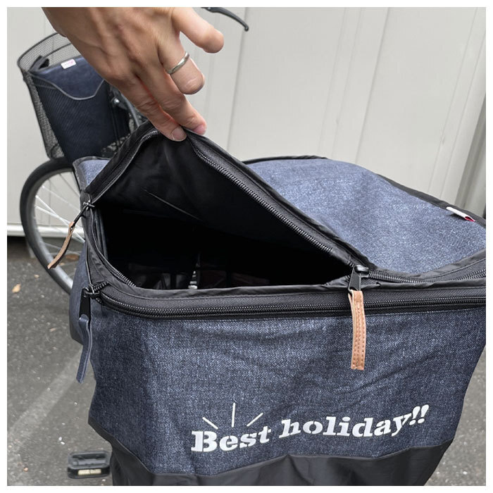 商品説明 | ・自転車での通勤時や、お子様の送り迎えの時にも大活躍!大切な荷物を雨やひったくりから守る、自転車用2段式デニム調後ろカゴカバー。 ・荷物が少ないときはすっきり!多いときにはたっぷり収納!その日の荷物の量に合わせてファスナーを開放し、2段式に容量アップ。 ・電動アシスト車など、大型の後ろカゴにも対応するワイドサイズ。(※カゴ対応サイズ・・・横幅:約33cm×奥行:約43.5cm×高さ:約26cmの後ろカゴに装着可能。細かいメッシュタイプのカゴには取り付けできません。) ・カバー背面のゴム(※)と、裾のドローコードで、カゴにしっかりとフィット。(※装着時、ゴムの位置は自転車のサドル側になります。) ・スタイリッシュなデニム調生地には、水滴をしっかり弾く厚手のはっ水加工生地を採用。突然雨に降られた時も荷物が雨に濡れるのを防ぎ、帰宅後にタオルでサッと拭くだけでお手入れも簡単! ・カバーの開口部はダブルファスナーでしっかりと閉じることができるので、ひったくり防止にも役立つ!(※ひったり抑止には効果がありますが、防犯上絶対ではありません。貴重品の管理はお客様ご自身で行ってください。) ・ファスナーは前開き・後ろ開き、どちらからでも開閉できる両開きタイプで使い勝手も抜群。 ・「Best Holiday!!」のロゴがデザインのワンポイント!晴れの日も雨の日も、自転車でのお出掛けが快適! |