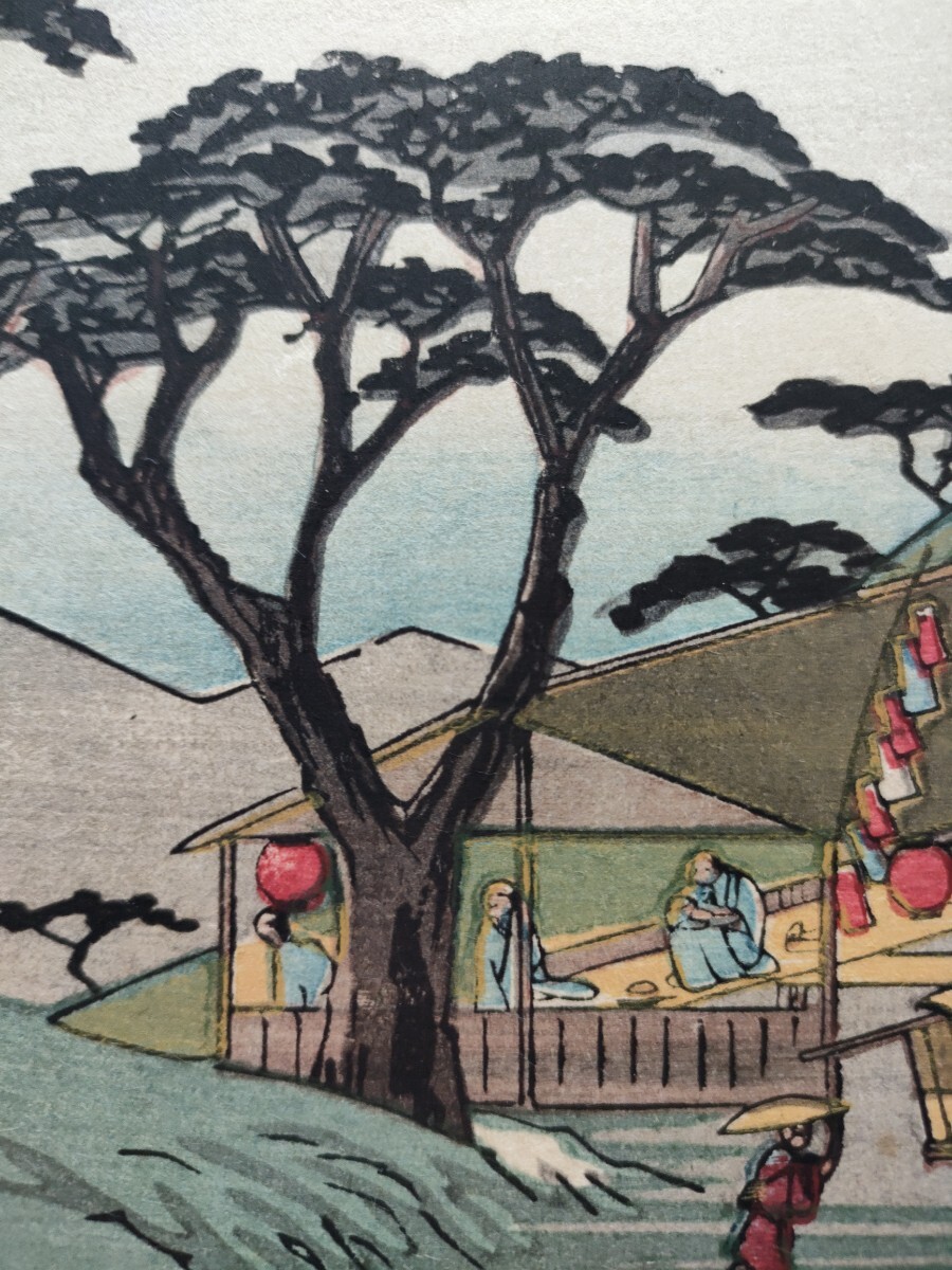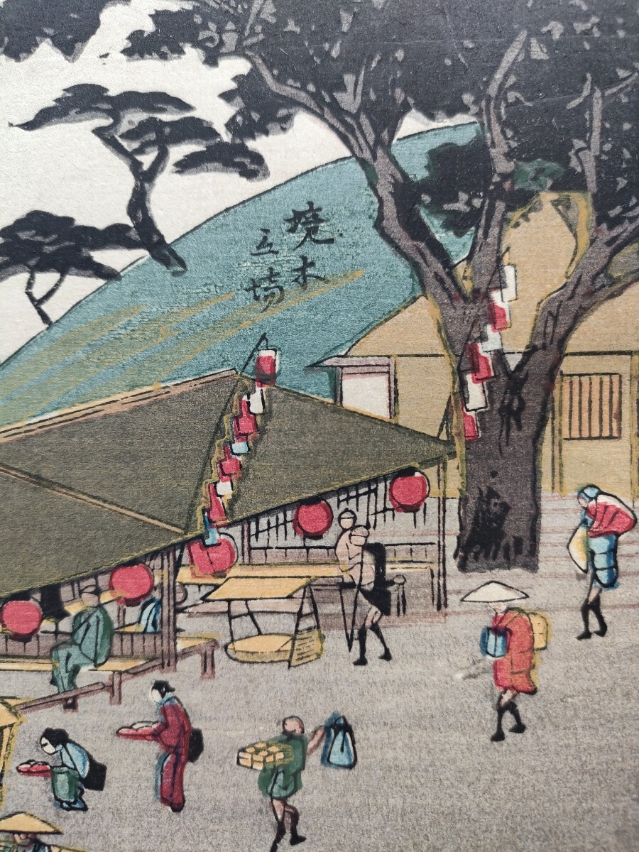 【真作】本物浮世絵木版画 歌川広重【東海道五十三次 保土ヶ谷】中判 錦絵 保存良い 裏打ち