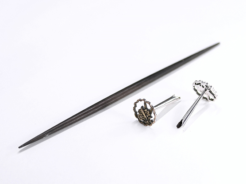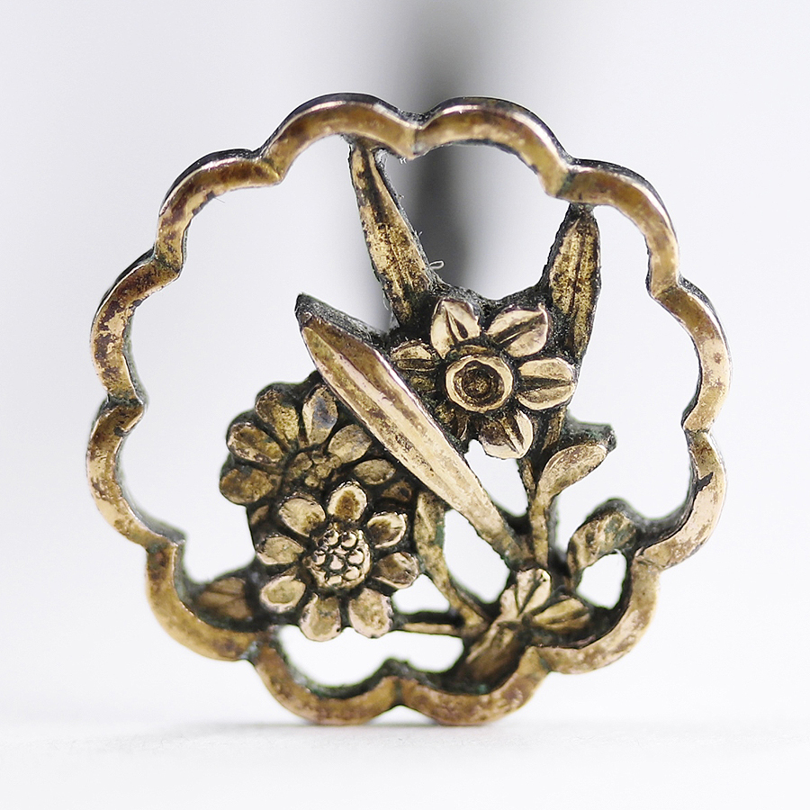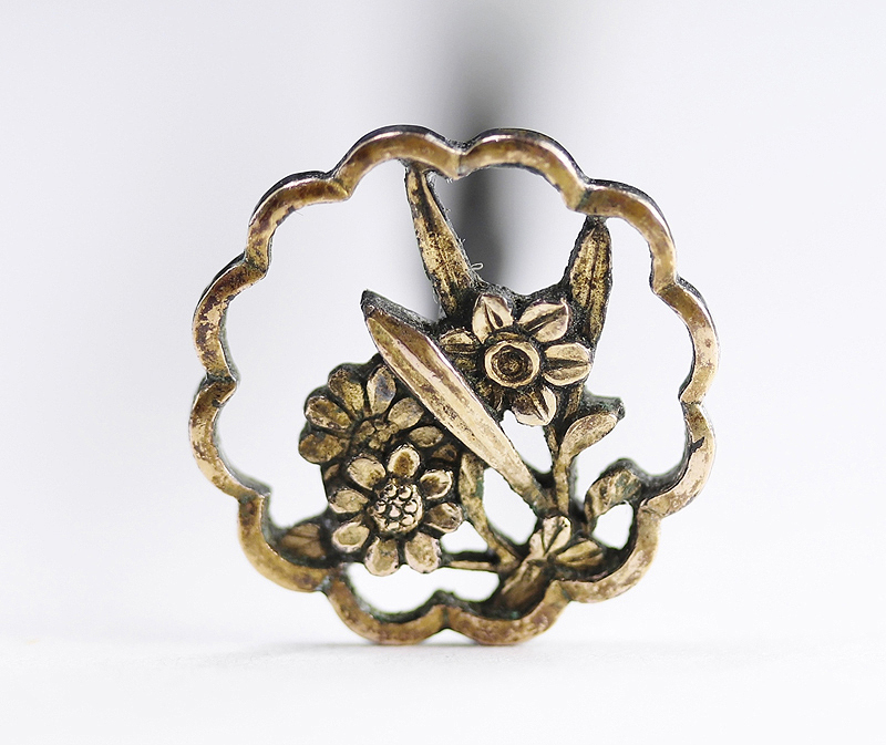 こうがい 彫金透し 鍍金 白銅 水仙菊 笄 AC291