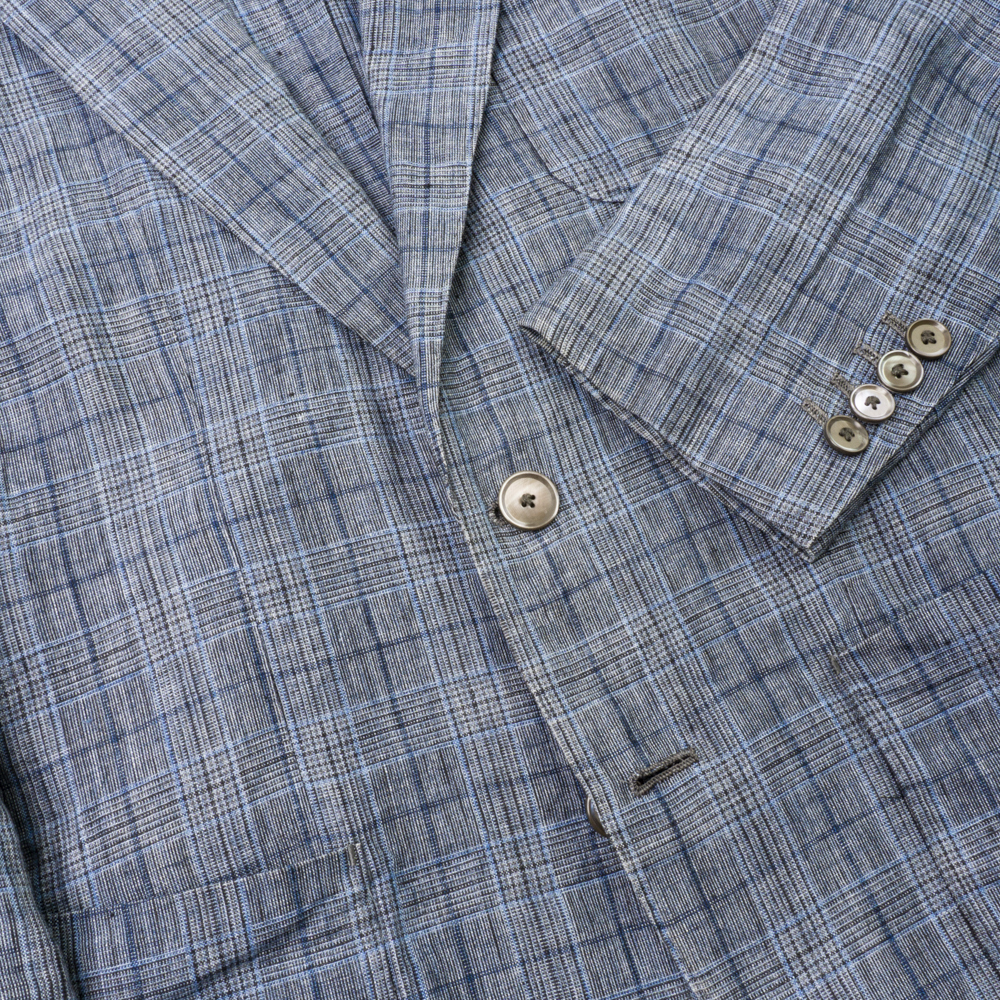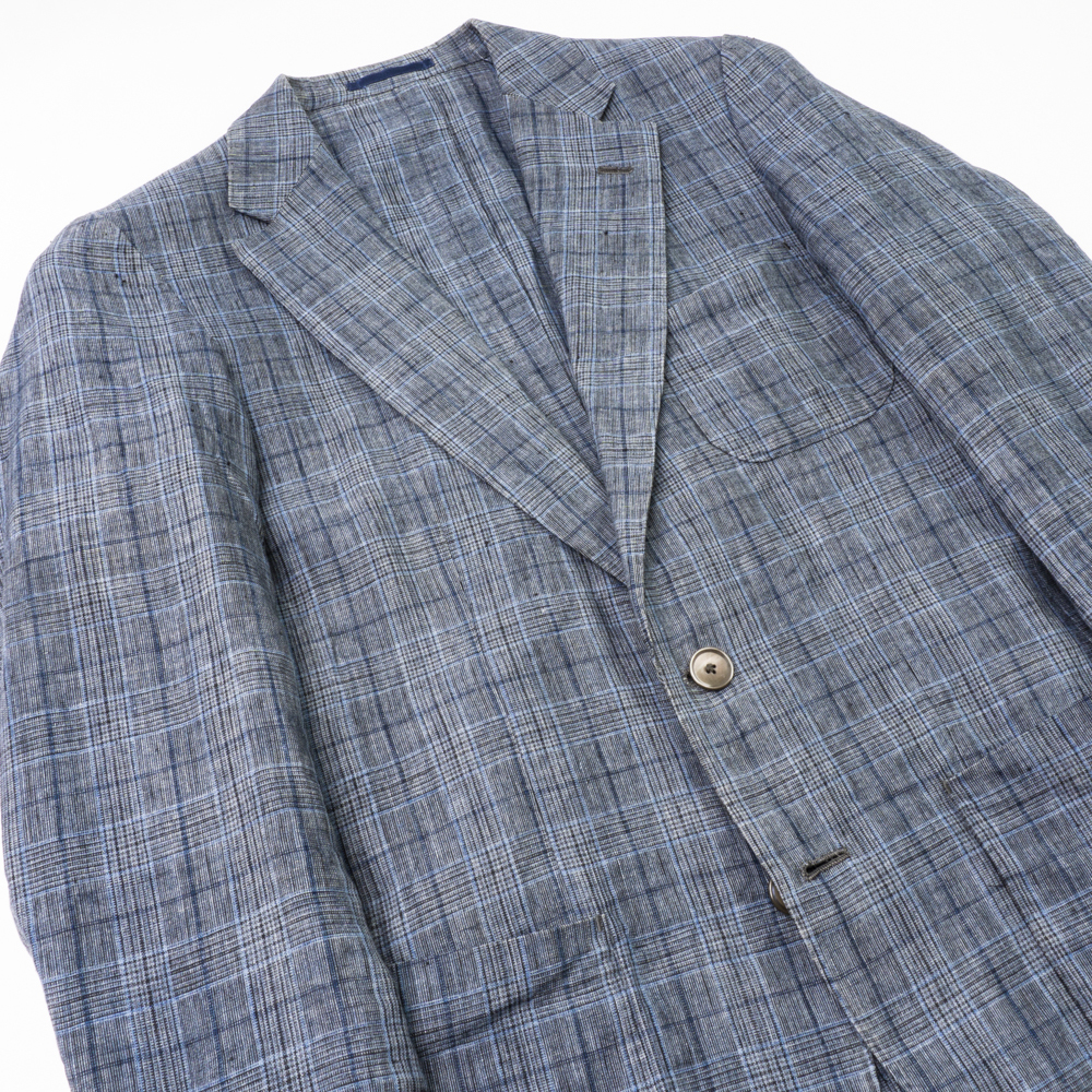 高級ITALYリネン生地『AQUOIBONISTE』テーラードジャケット 46(M相当) ネイビー/チェック柄 ナノユニバース メンズ 管理65