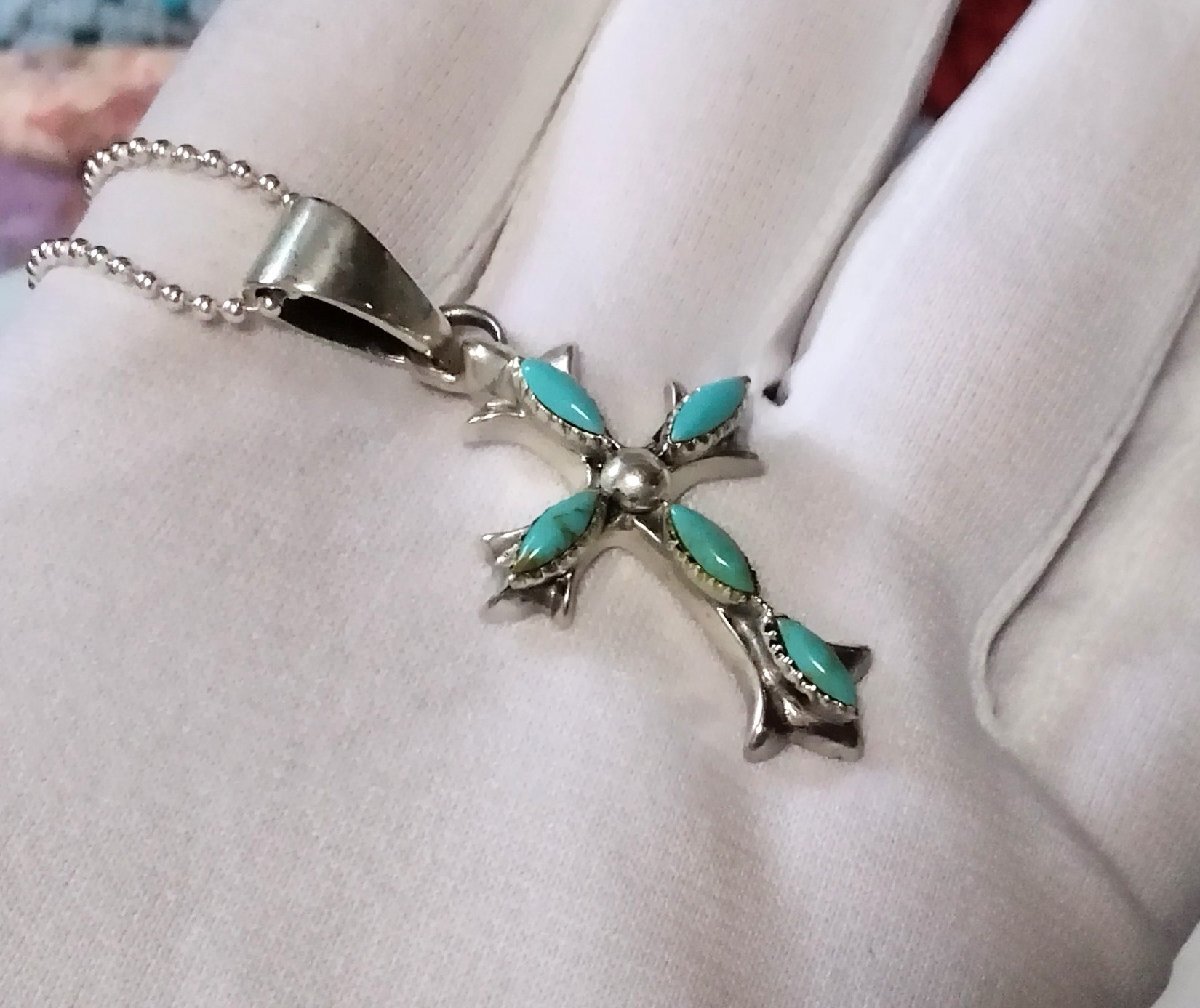 特徴:![]() ★ブルーの宝石ターコイズ! その鮮やかな空色を トレンド感いっぱいの アンティークテイストでデザイン! 職人技のハンドメイドでお作りした 美しいシルバークロス・ペンダントです! ![]() シルバー独特の優しい銀色と ターコイズの組み合わせは 人気のアメリカンジュエリー! ![]() 鮮やかに胸元に映える、ターコイズブルー。 その存在感を活かして カジュアルスタイルに とっても相性良し(^0^) ![]() |