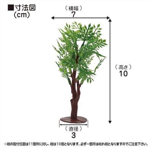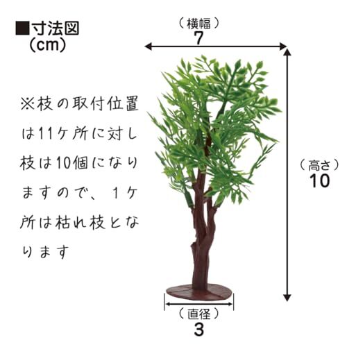 商品説明 | 素材:プラスチック サイズ:(約)長さ10cm ロットの関係上、個々の素材や大きさが微妙に変わる可能性があります。 鉄道模型(Nゲージ・HOゲージ等)・ジオラマ・ストラクチャーに欠かせない樹木のセット。作品の完成度を上げるために、お薦めです。 土台付きですので、ミニカーでの街作りなどに。10本セットですので、まとめ買いに便利です。ぜひこの商品で、本格的な情景を目指してみてください。 枝の先端部分が取り外し可能なので、お好きなようにカスタマイズできます。※枝の取付位置は11箇所に対し、枝は10個となります。必ず一箇所は枯れ枝となりますのでご注意下さい。 ※ご覧の環境やロットによって、多少色味が異なります。