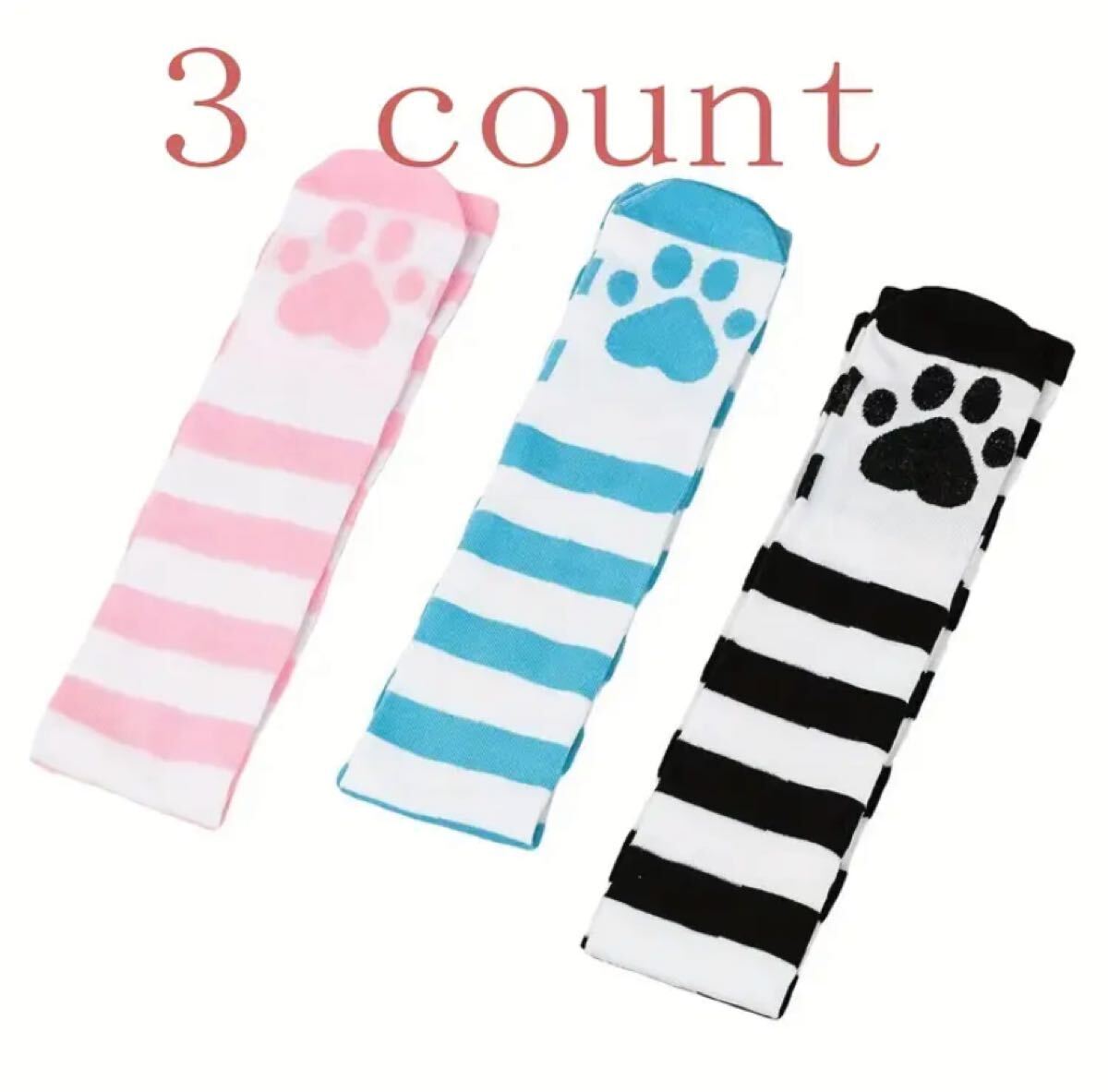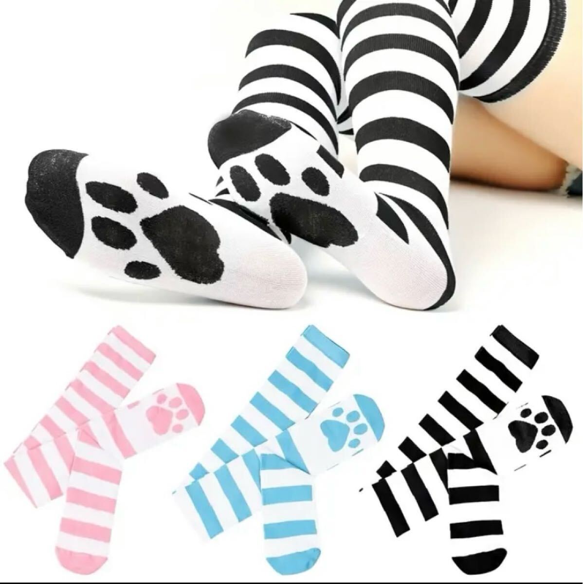 ご覧いただきありがとうございます!みんな大好きブルーと白色のストライプ模様で足の裏の位置に可愛い肉球がプリントされたソックスです!ロリ系のコスプレや普段使いのお洋服など様々なシーンで合わせられます!