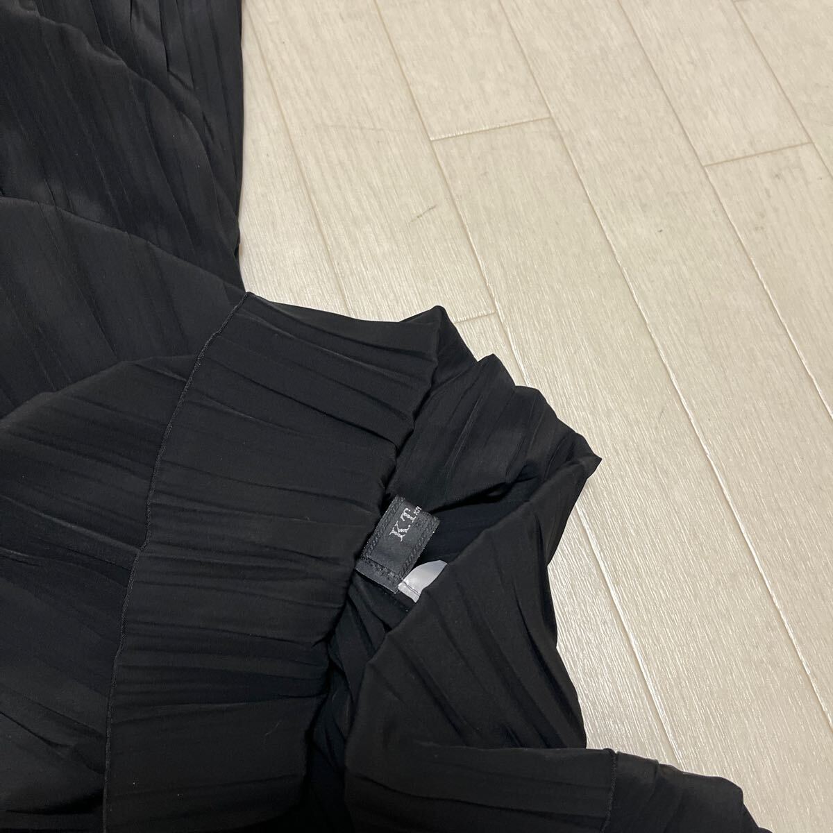 和752★ K.T KIYOKO TAKASE BLACK ケーティー キヨコタカセ ブラック ノースリーブ ロングワンピース プリーツ 11 ブラック レディース