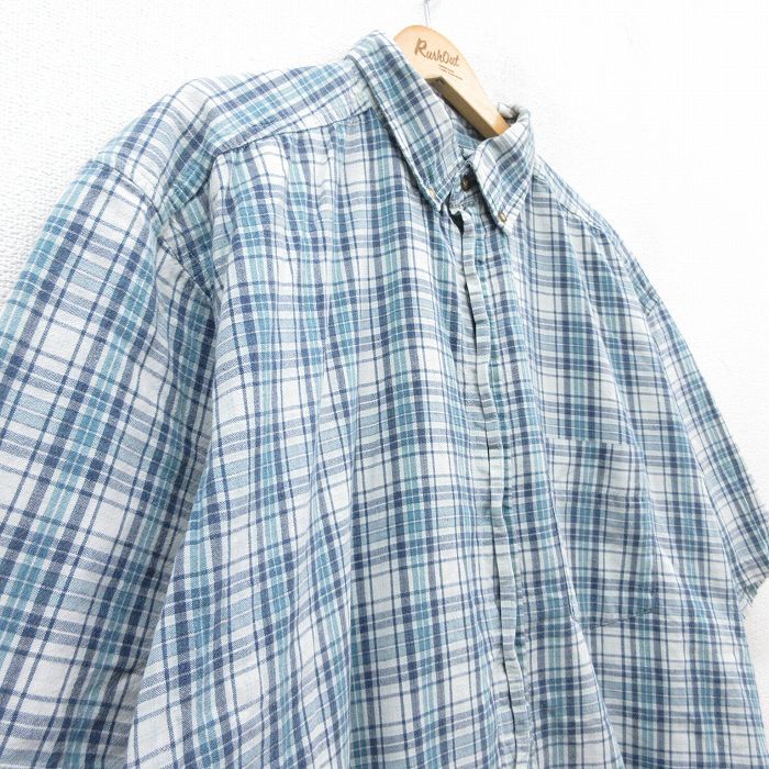 【商品名】 XL★古着 半袖 シャツ メンズ 00年代 00s コットン ボタンダウン 薄紺他 チェック