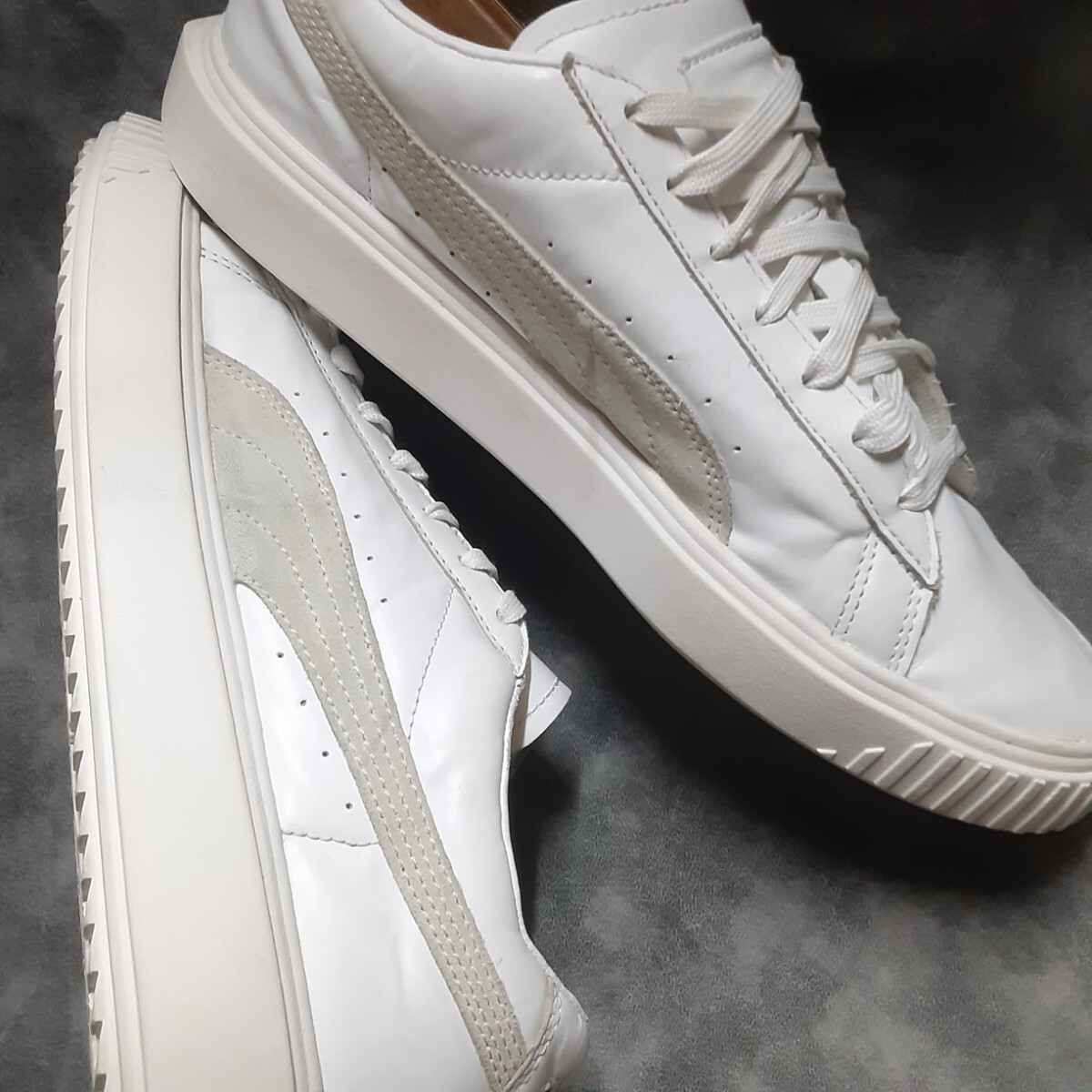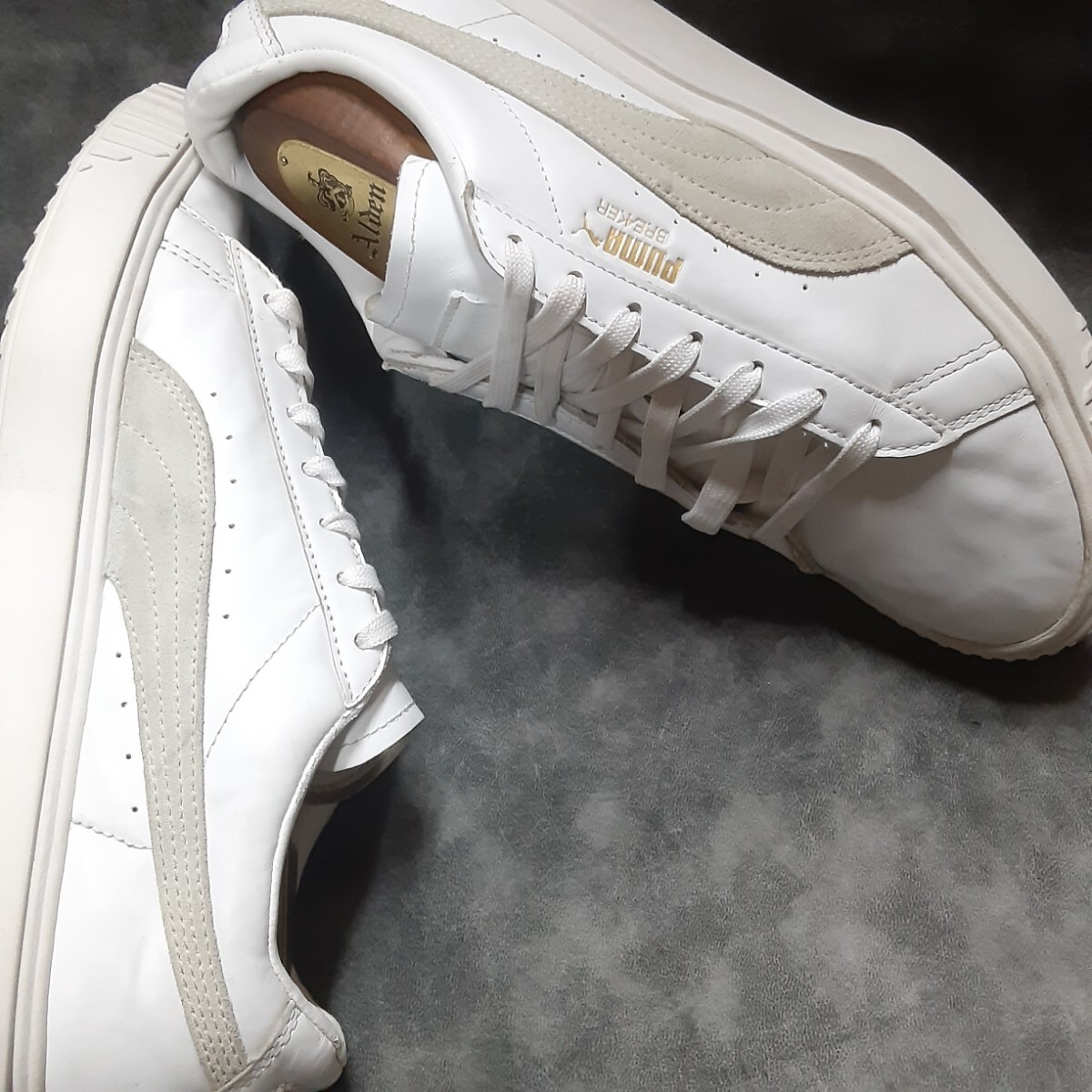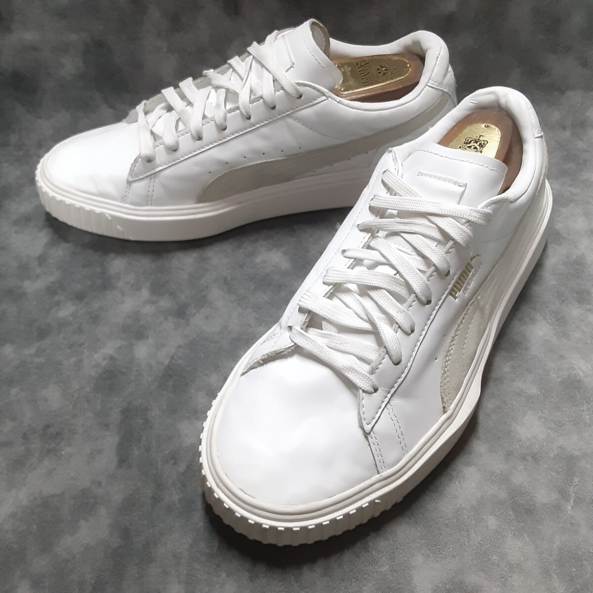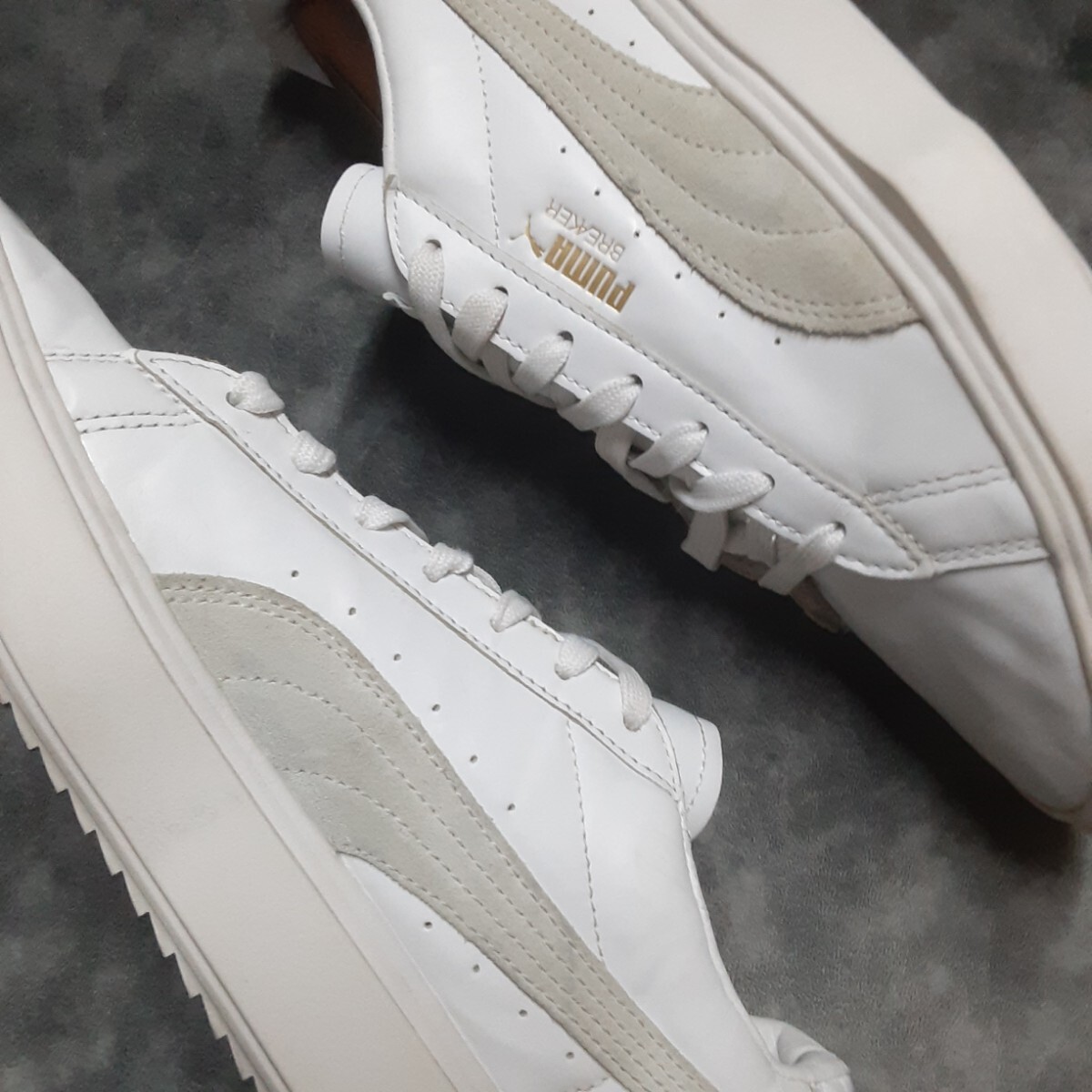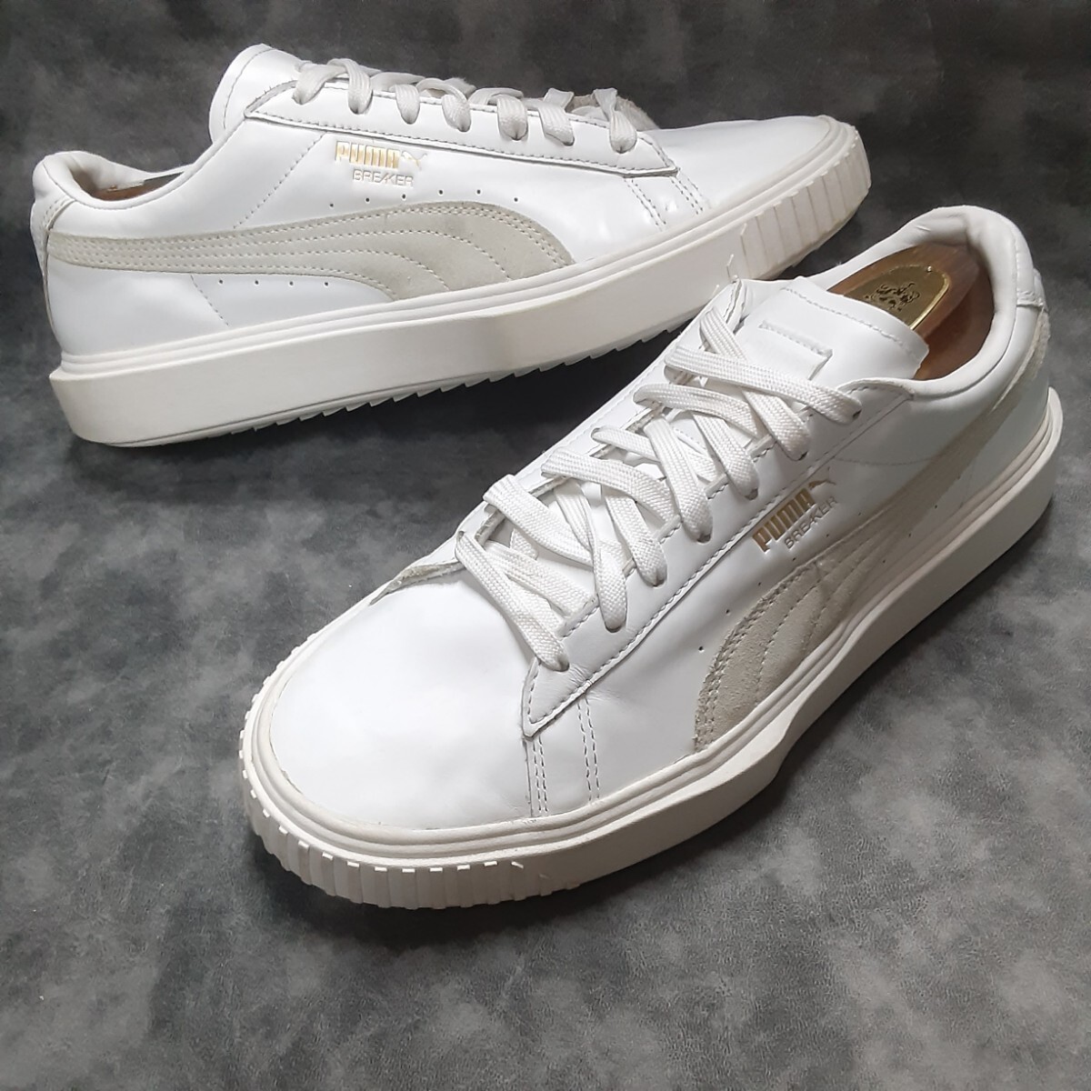 最値!定10780円!名作ヘキサゴンソール!再構築デザイン!プーマ(PUMA)ブレーカー カウレザー スニーカー!完売クラシックホワイトク!白 27.5