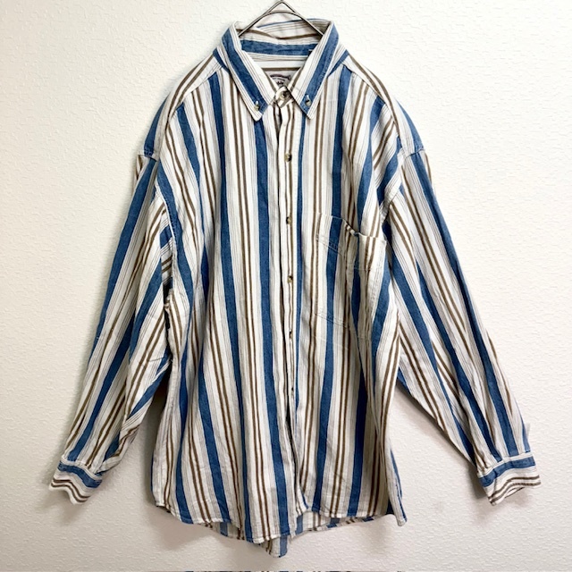 ■アイテム:長袖ストライプシャツ マルチカラーボタンダウンコットンシャツ