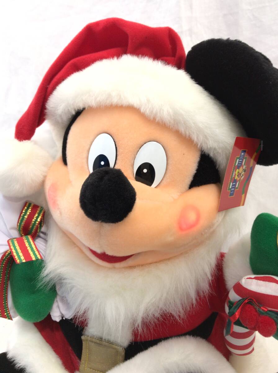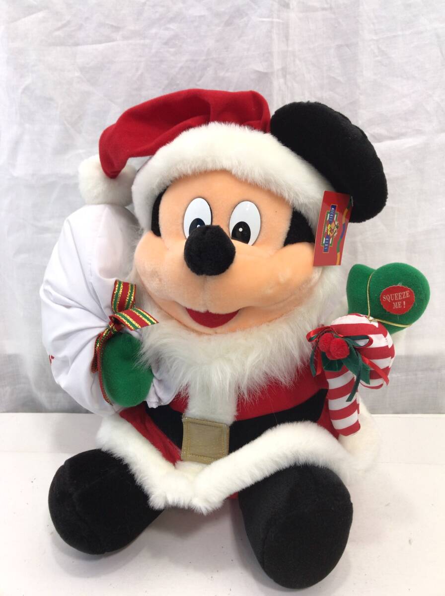 ミッキーマウス ぬいぐるみ サンタクロース クリスマス 音が鳴る タグ付き E62