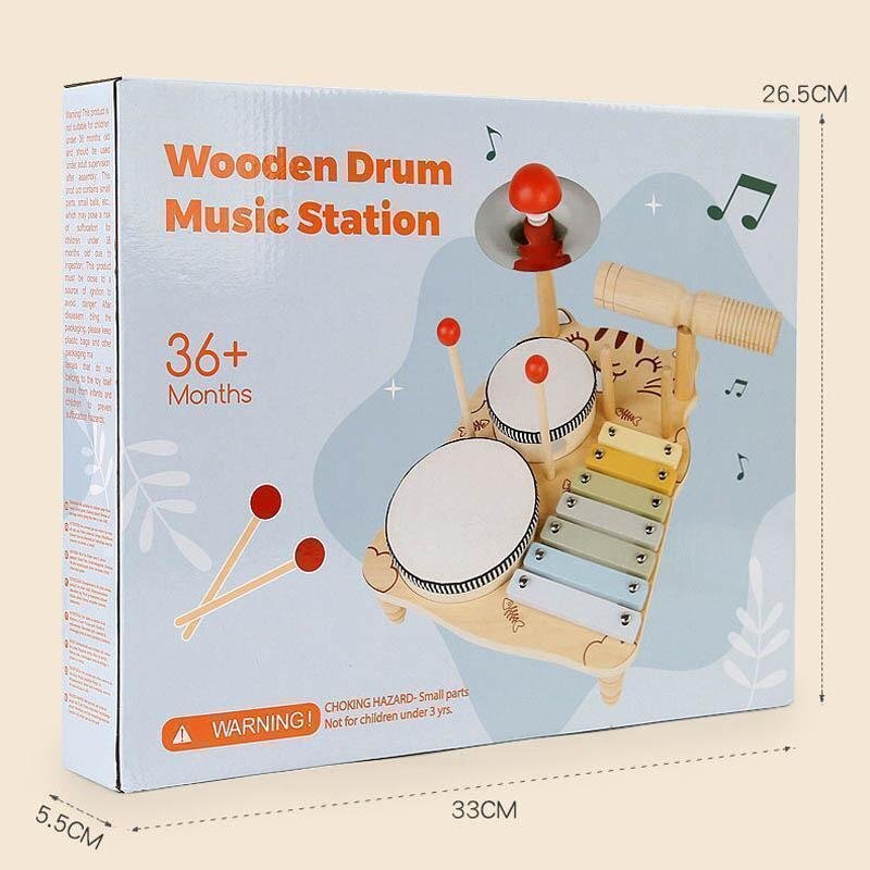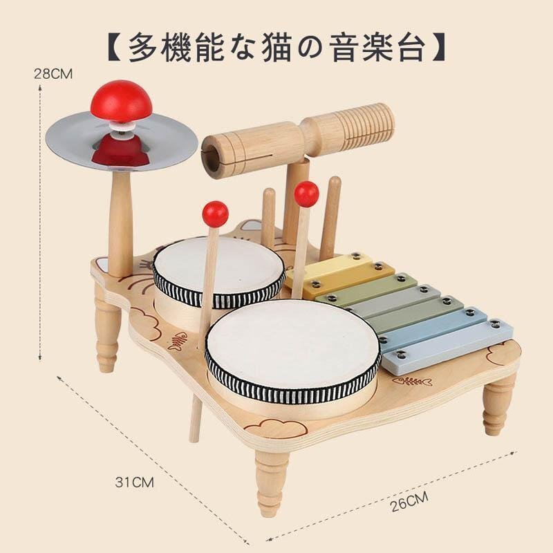 子供用の木製のオルフ音楽打楽器、音楽台ピアノ、ドラム、ゴング、手打ちドラムの知育玩具木製玩具オルフ音楽感知