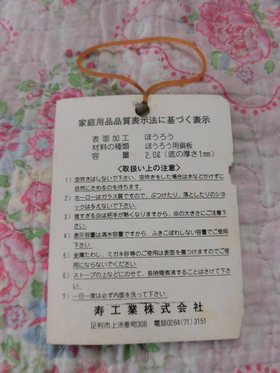 ****   やかん コトブキホーロー 容量2リットル   ****   (2466)