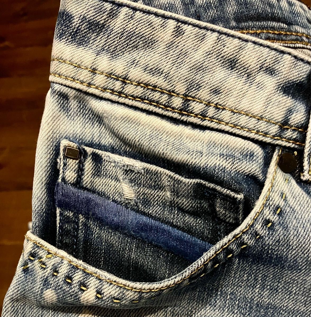 こちらはライトカラーになるまで色落ち加工を施し、随所に丁寧なダメージ加工を加えています。