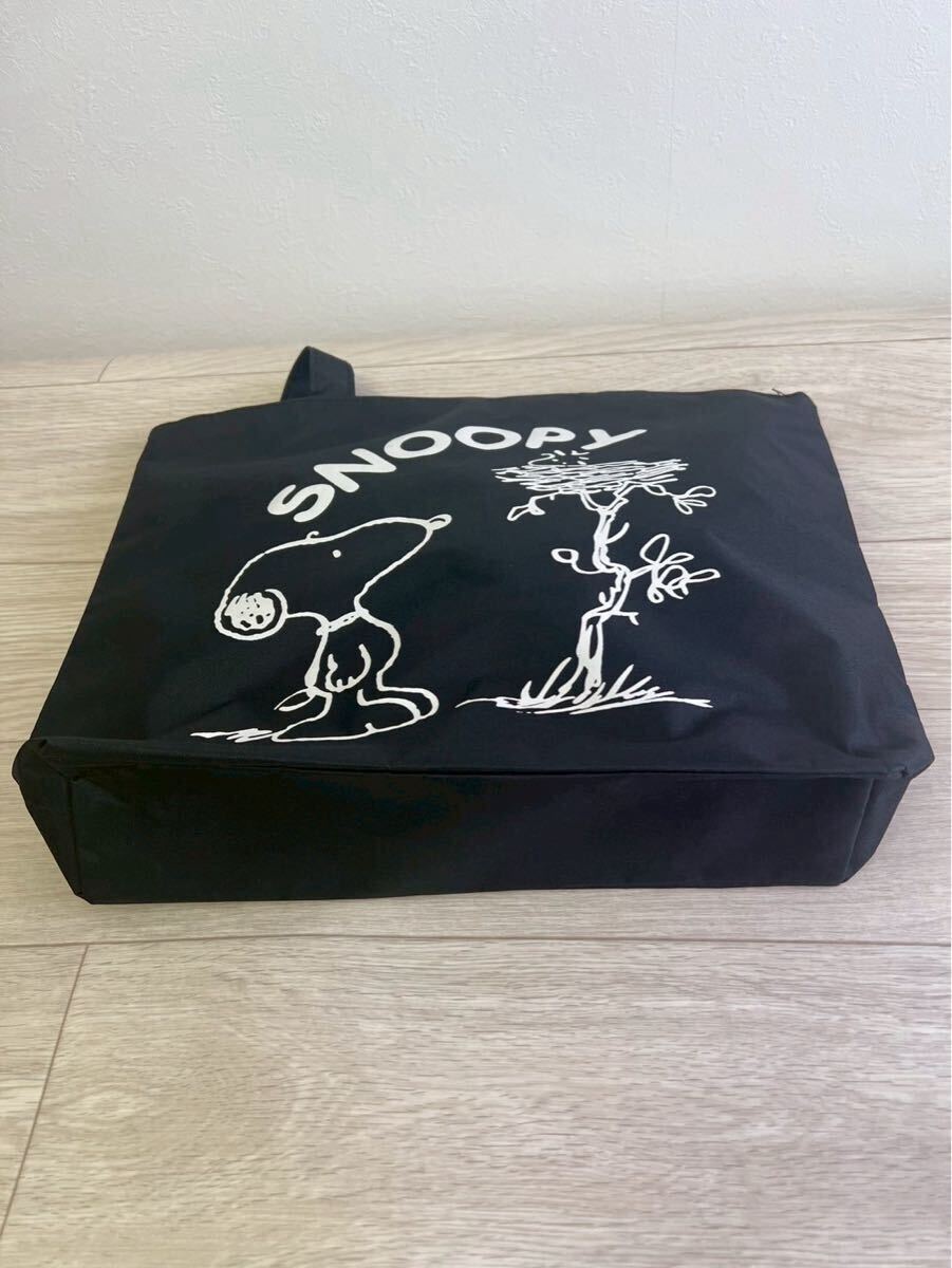 - デザイン: スヌーピーのイラストがプリントされたブラックトートバッグ