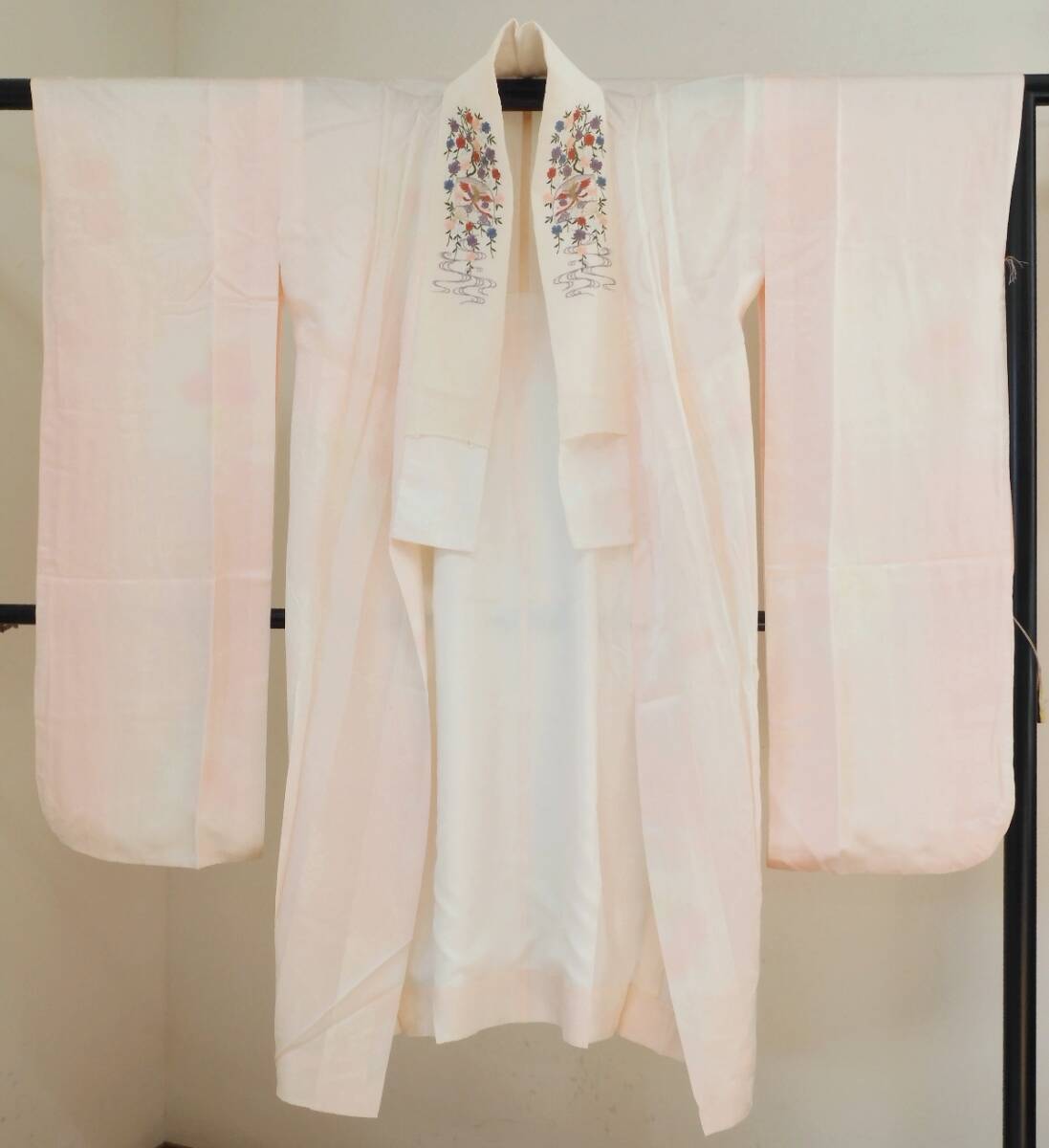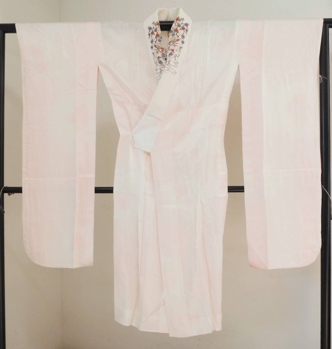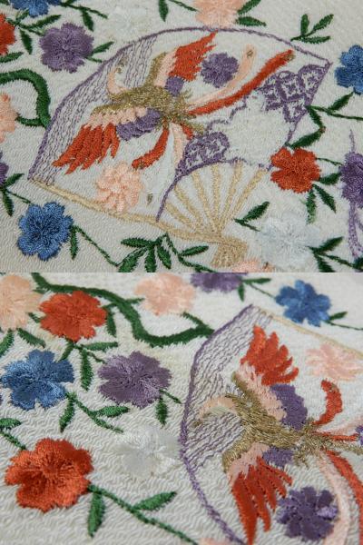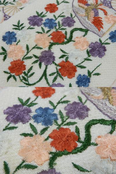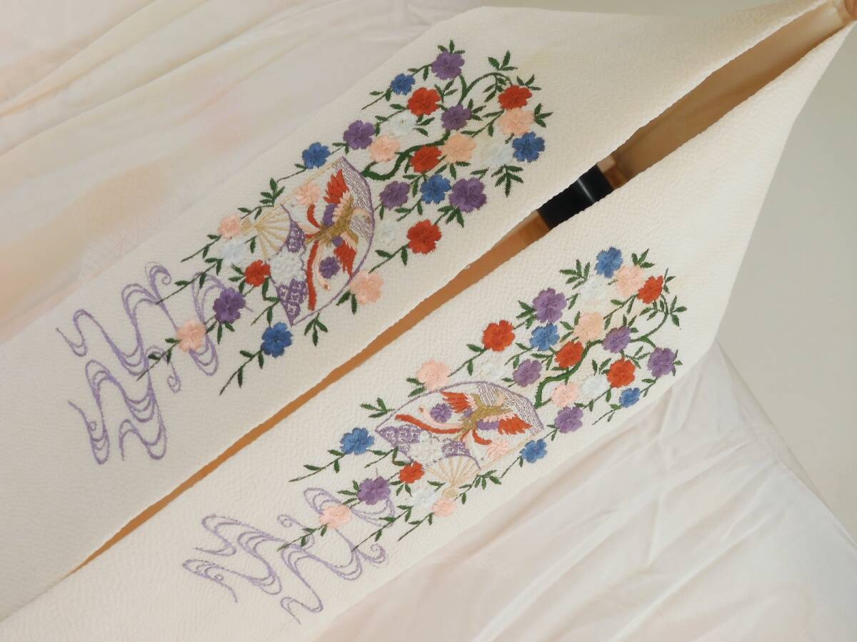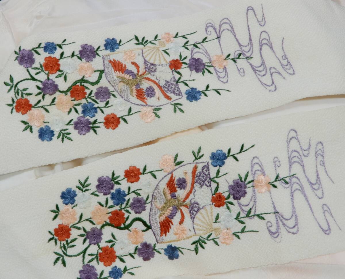衿は白い縮緬地に豪華な刺衿が付けられています。