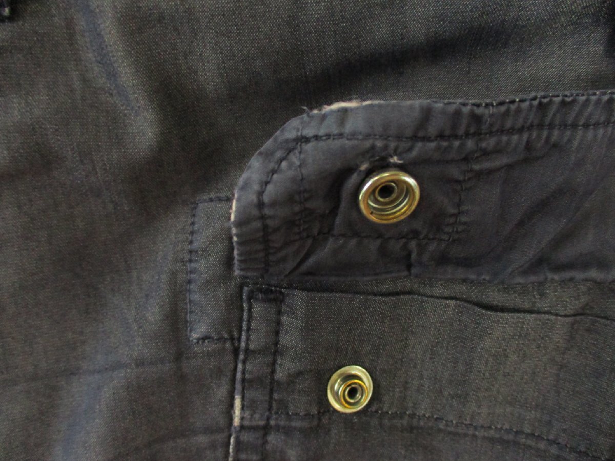 両ポケットスライダー引手が折れていますが、開閉可能です。裾スレあります。ポケット周りこすれ、シミがあります。内タグがないので素材は不明です。写真を参照いただきますようお願いいたします。