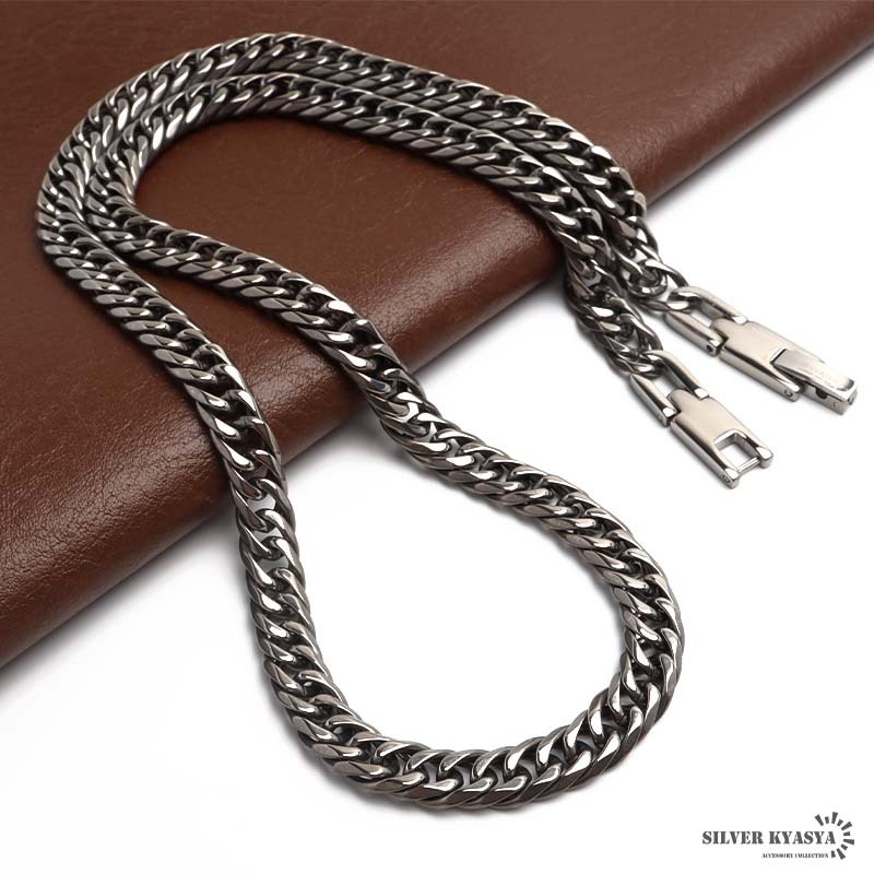 高密度で存在感あふれるダブル喜平のネックレスにチタンタイプが登場。程よいサイズ感で普段のファッションに馴染みやすいアイテムです。留め具は見た目がお洒落で人気の中折れ式を採用。
