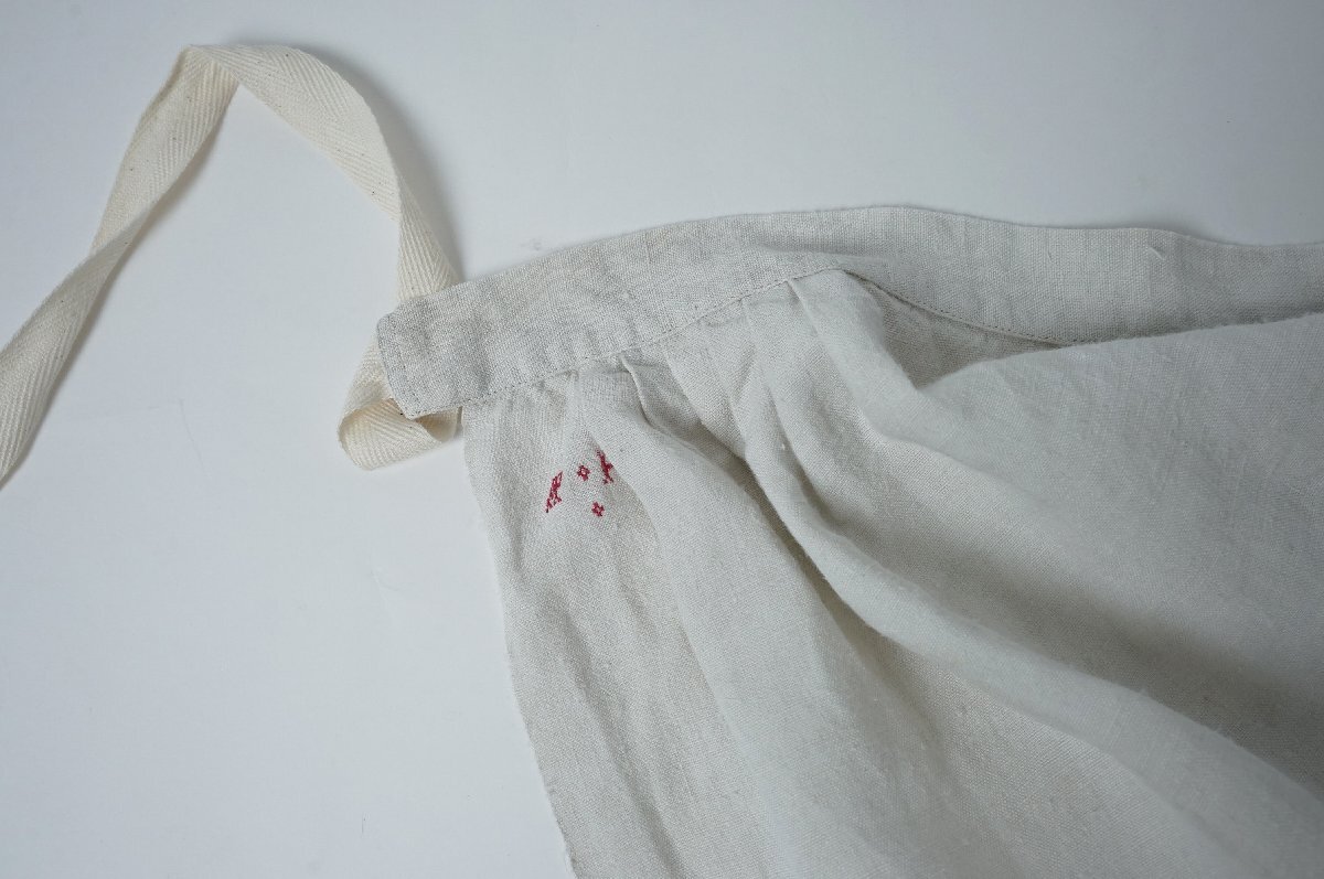 フランス アンティーク エプロン タブリエ リネン 麻 刺繍 [E633]