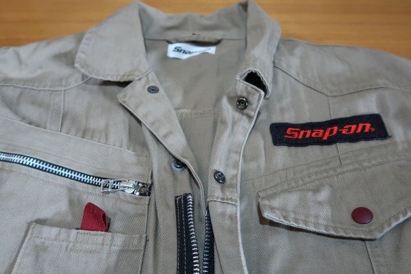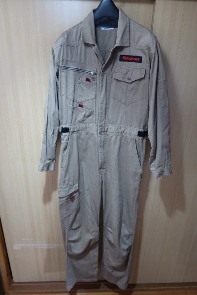 SNAPON スナップオン ヘリンボーン オールインワン ツナギ Lサイズです、肩幅約48cm ウエスト約47.5×2cm 股上約79.5cm 股下約72cm 袖丈約56cmです、使用感があり腰から下に染みが多数あります、発送は宅急便の送料元払いのみになります。