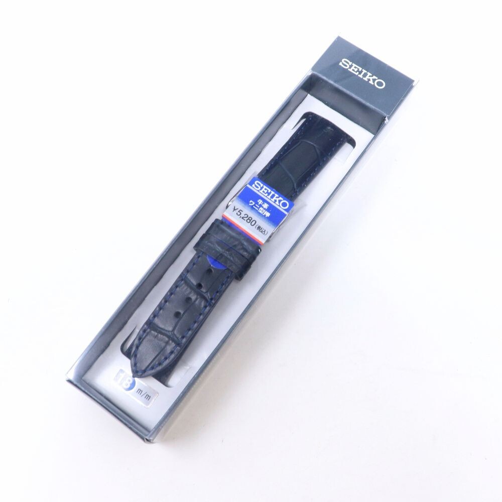 . | セイコー 純正 バンド 18mm 牛 革 紺 ネイビー ベルト ワニタケフ 型押 |