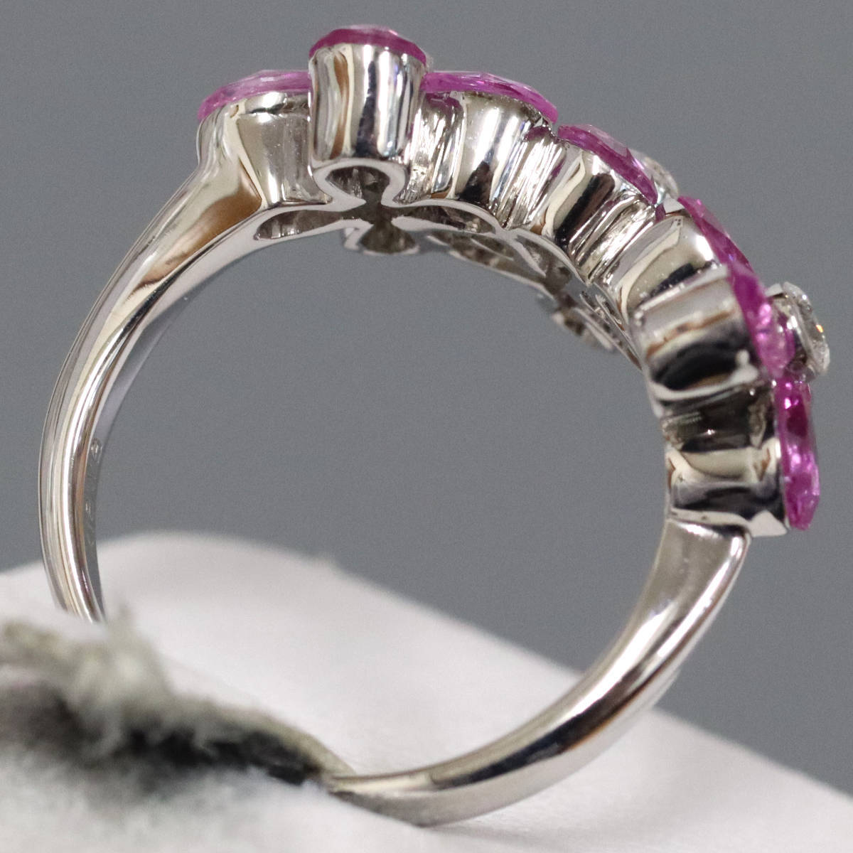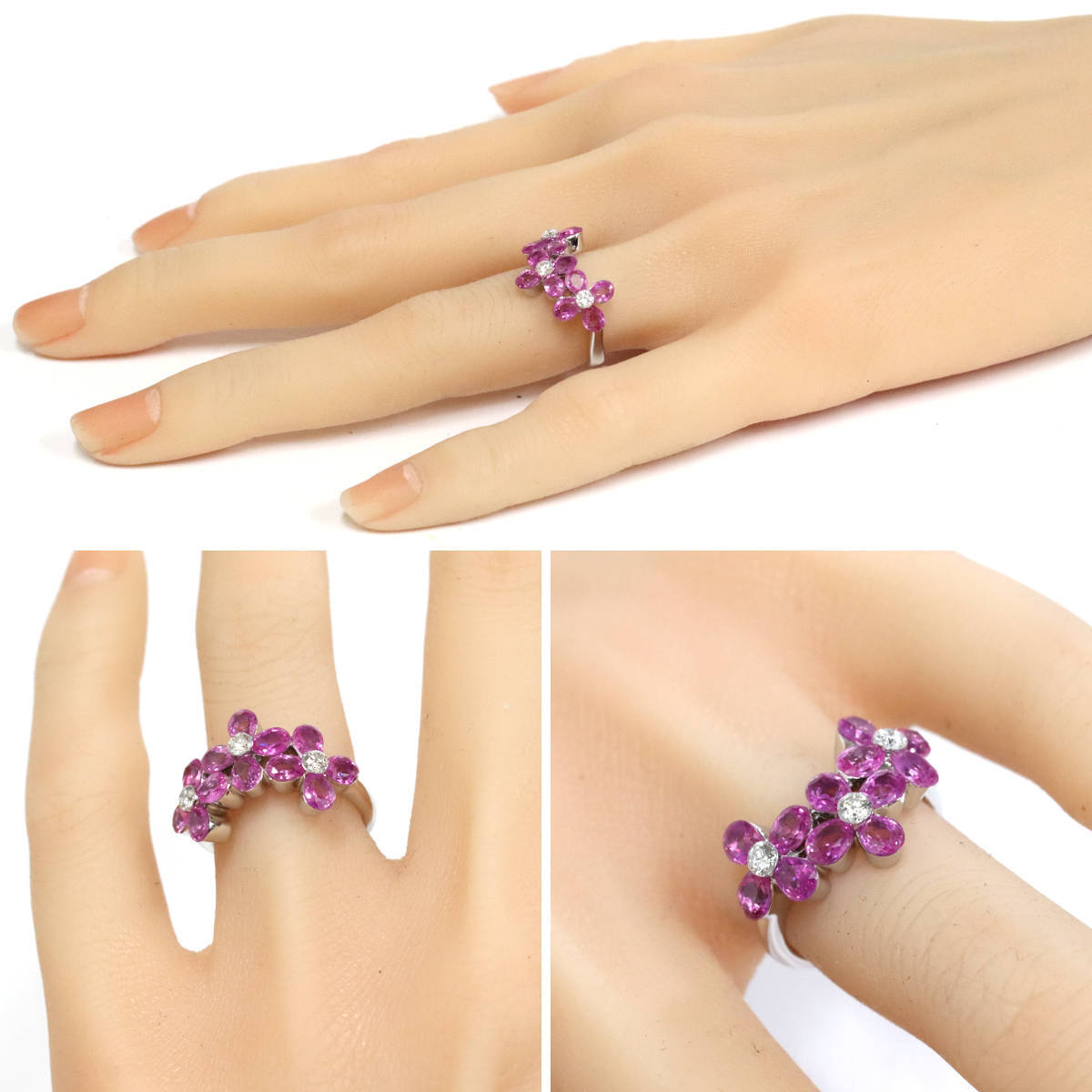 | ■ K18WGピンクサファイアダイヤモンドリング フラワーモチーフ PS3.44 D0.21 5.7g #10.5 ■ | ||||||||||||||||||||||||||
