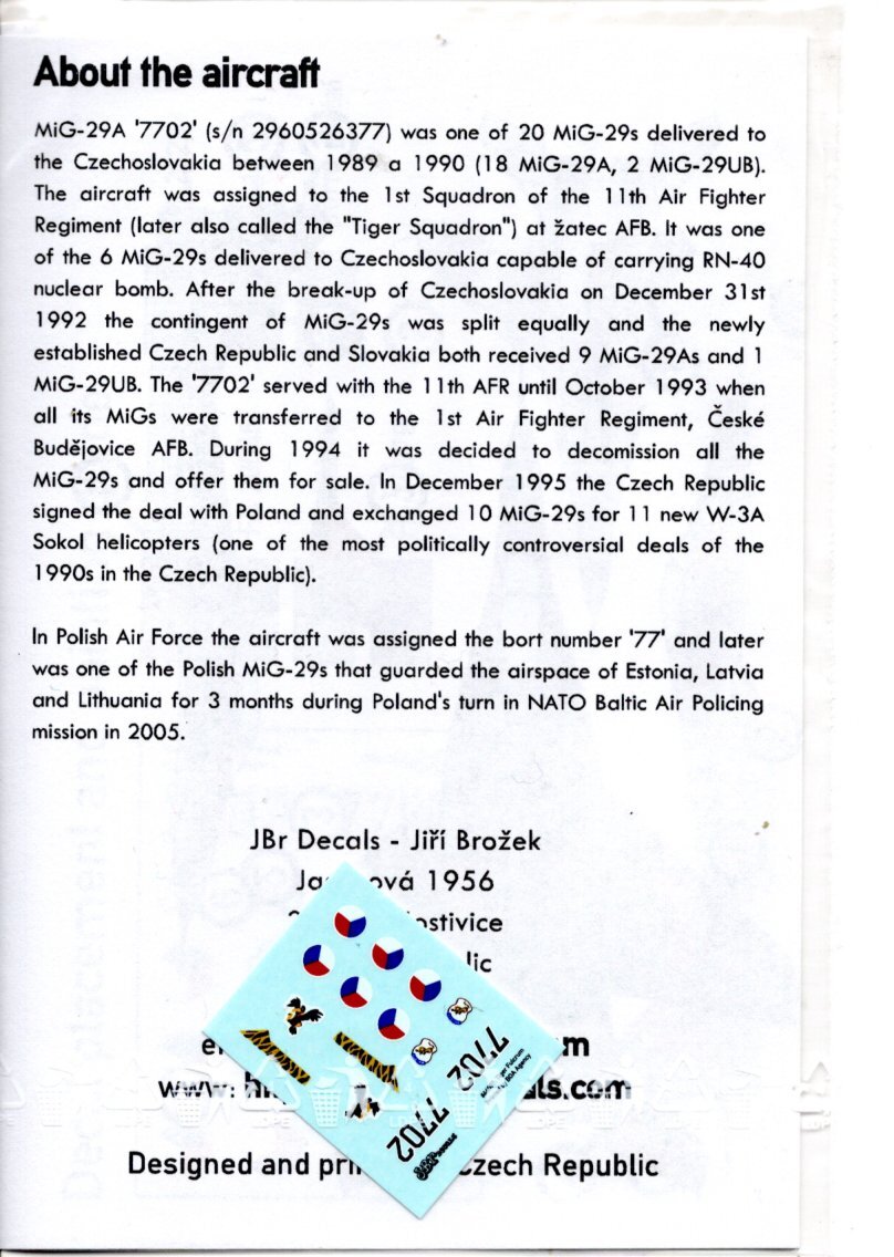 チェコスロバキア空軍のMig-29A7702(S/N2960526377)1989年から1990年の間にチェコスロバキアに納入された20機のうちの1機。
