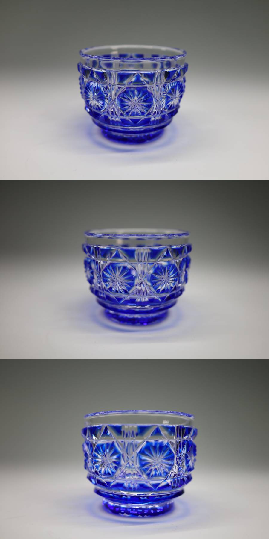 ◇雅◇ 復元 薩摩切子 薩摩ガラス工芸 色被せガラス 切子猪口 尚古集成館監修 切子ガラス ぐい呑 猪口 黄布 共箱 /MK.25.5[J42.5] OOSN7