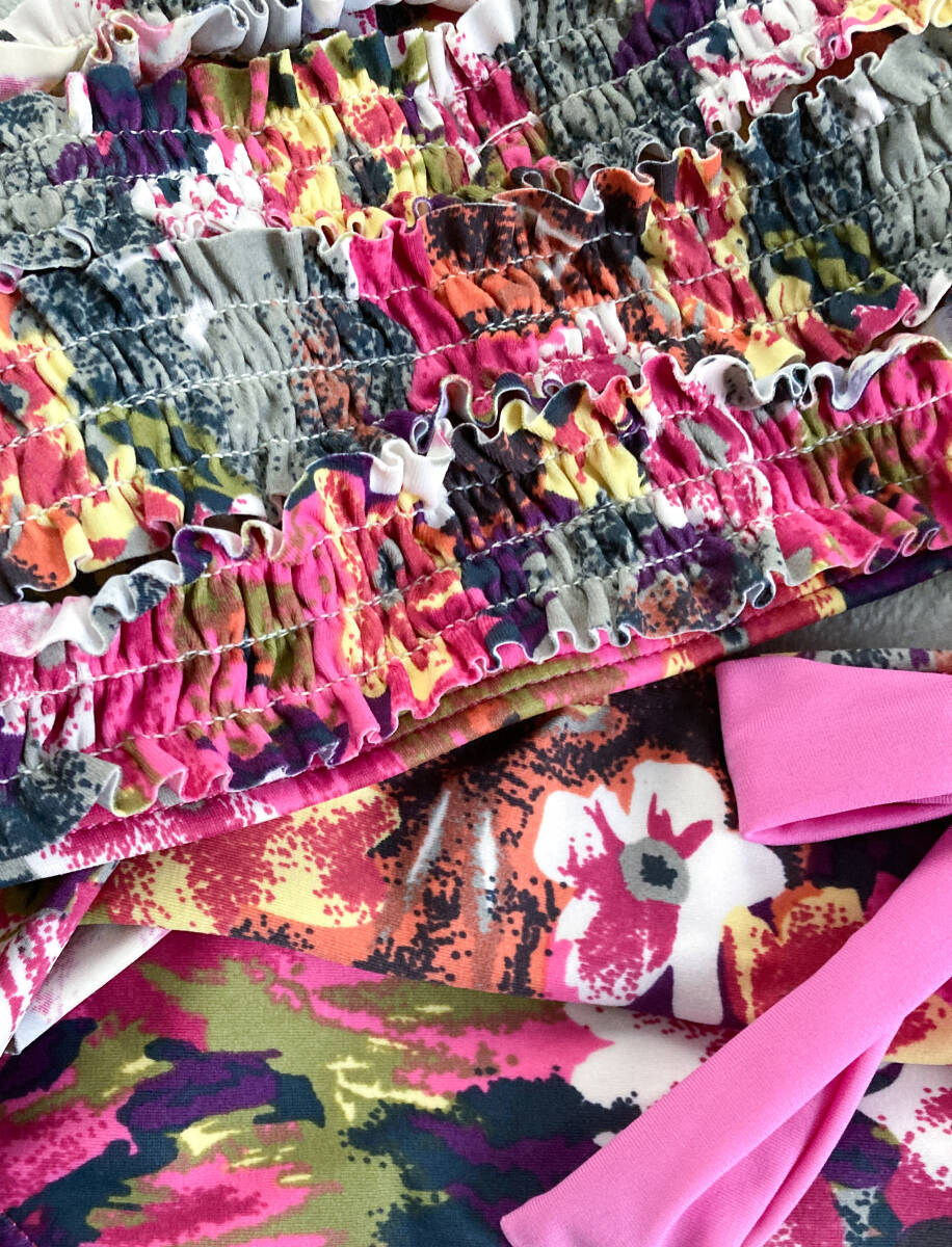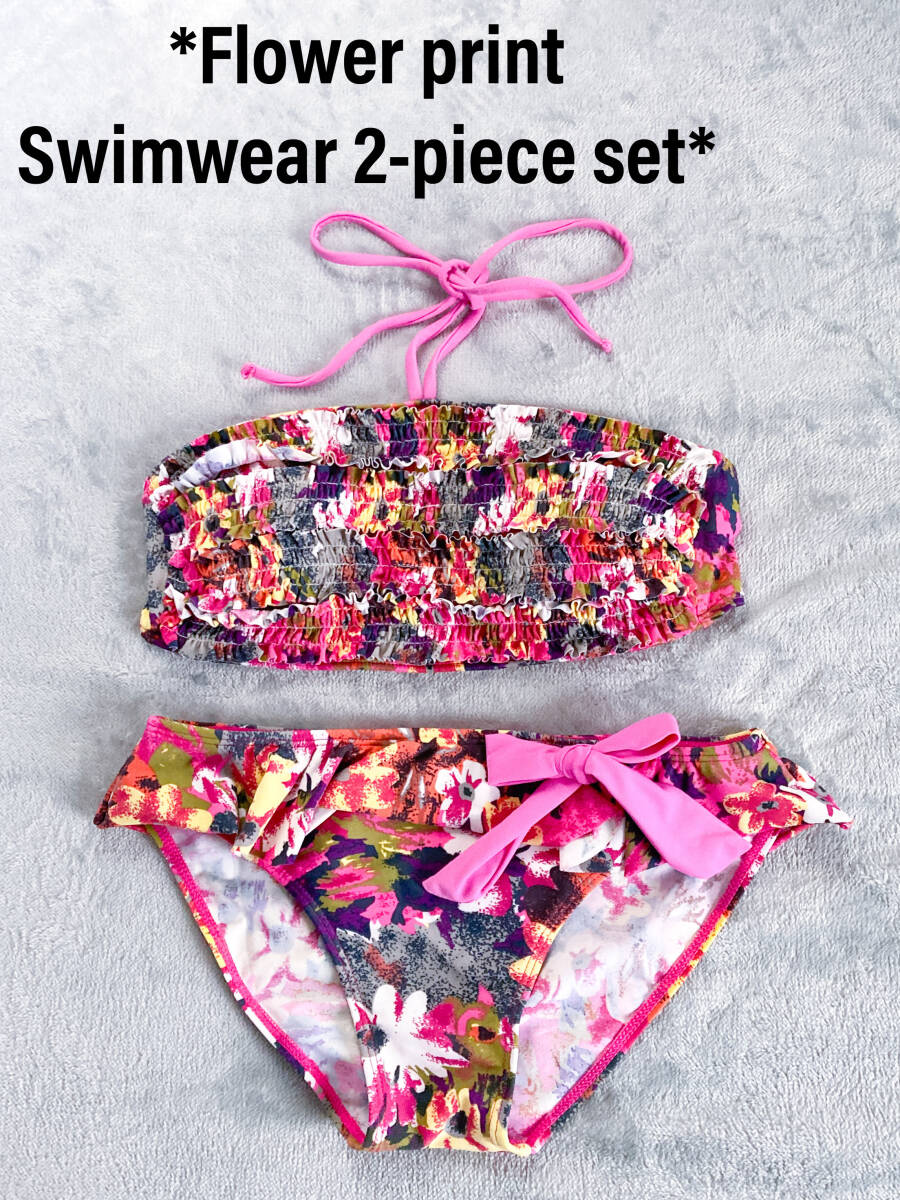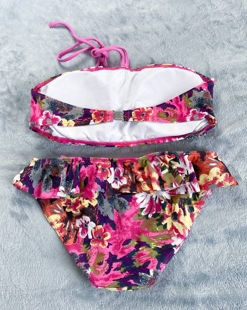 2回着用のみ 水着 セパレート スイムウェア 花柄 ホルターネック 2点セット ブラ レディース ピンク Mサイズ 上下 お揃い ママ