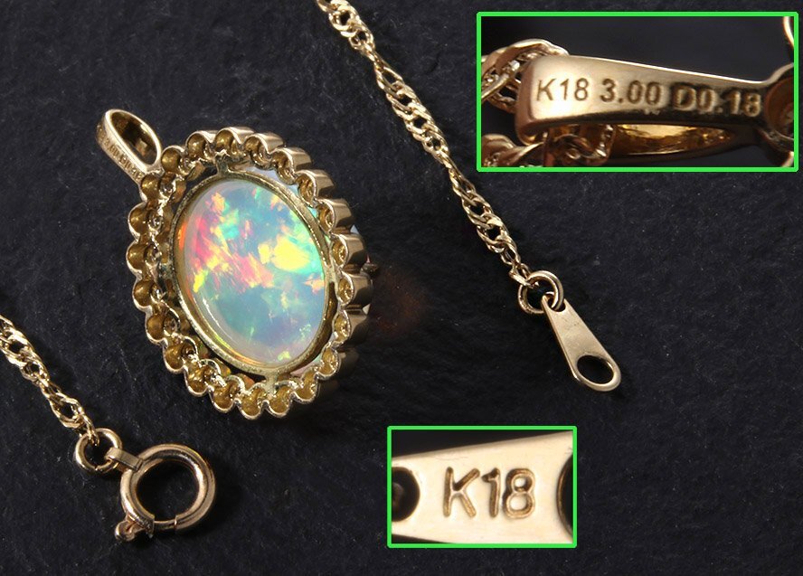マテリアル | 天然オパール3.00カラット(カラット刻印あり)天然ダイア合計0.18カラット(カラット刻印あり)、k18製 |
