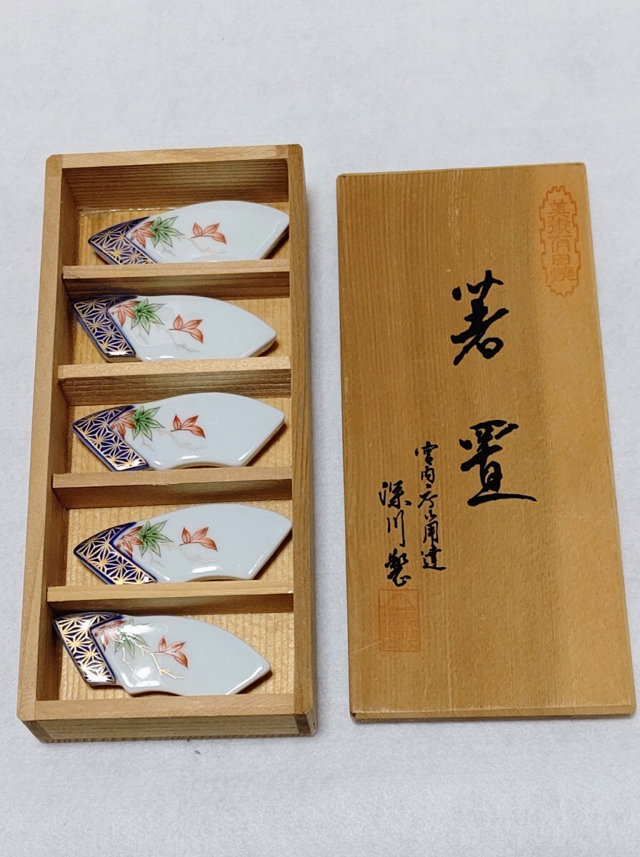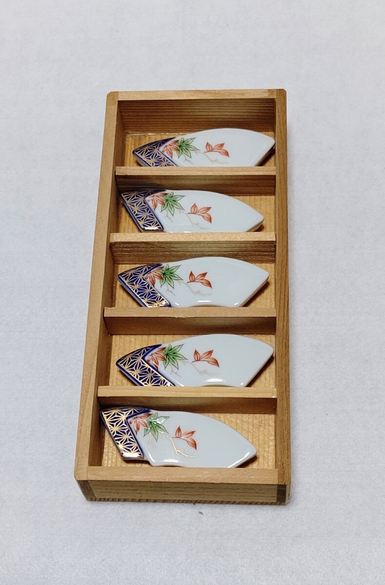宮内庁御用達 深川製 箸置き 扇型 金彩紅葉/青紅葉の出品に成ります。